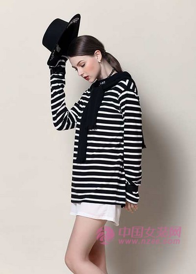条纹T+休闲短裤,宽松版型的黑白条纹长袖T恤搭配白色休闲短裤,这样的搭配出游穿***是***,休闲宽松,看着就很青春靓丽。