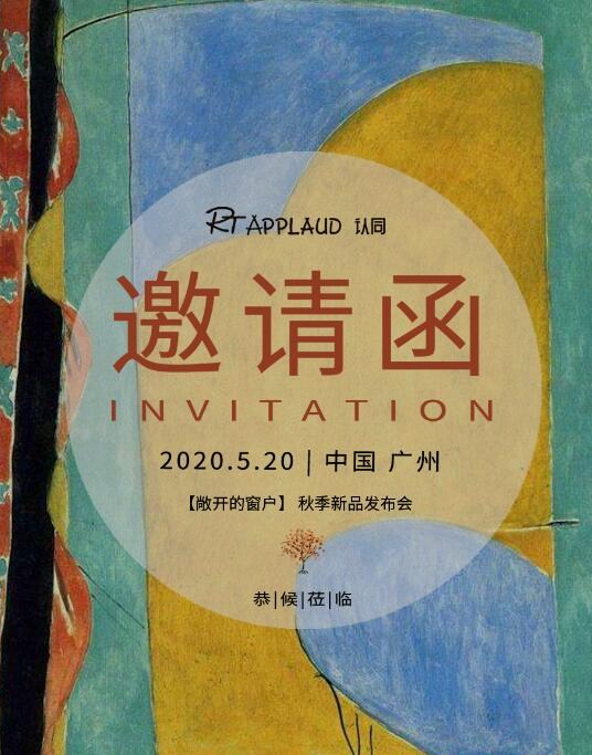 认同RT APPLAUD以“敞开的窗户”为主题的2020秋季新品发布会暨订货会将于2020年5月20日在广州举办。届时,诚邀新老客户莅临参加!