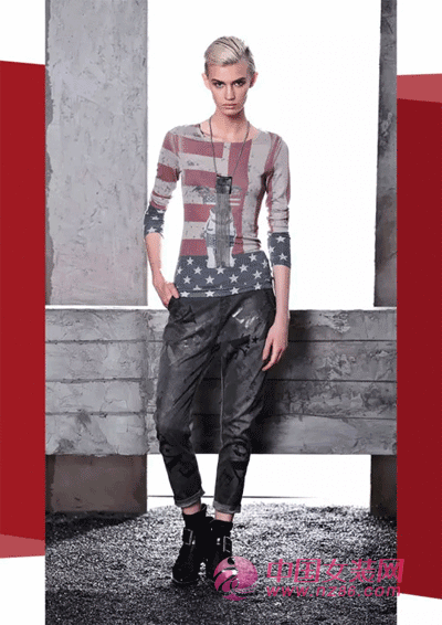 如果有一些大众所知的红色图案,那就***不过了,一点也不唐突,配上一条个性的黑色长裤,相当有潮流范。