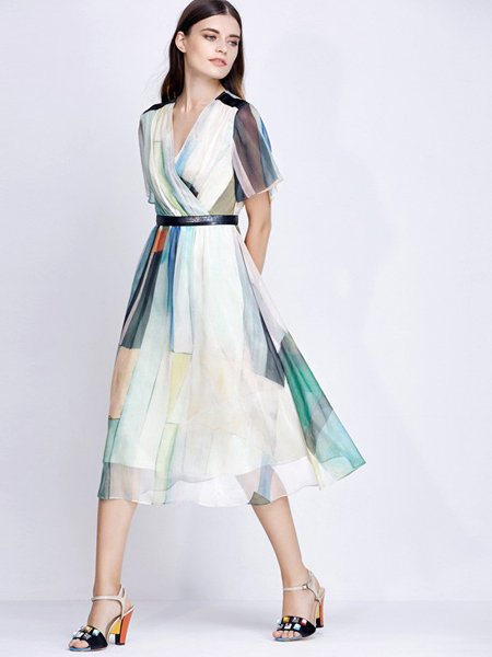 面料手感滑爽质地柔软,上身合体包身下身收腰放摆,再加上精致可拆卸的腰带,既时尚又保证其穿着的舒适度。