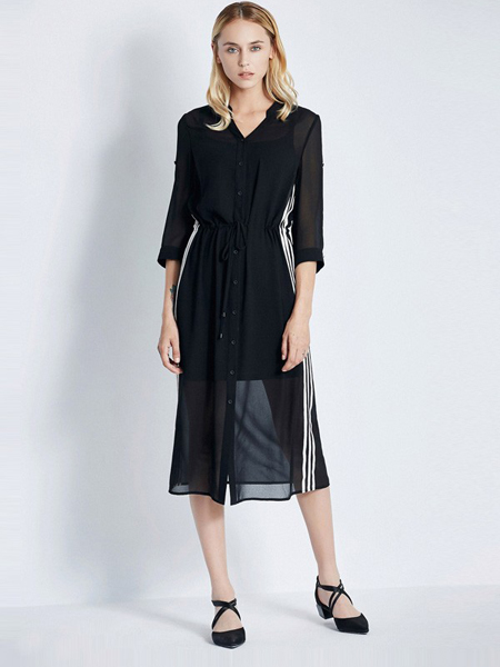 此款连衣裙经典时尚,舒适的落肩廓型与设计考究的线条拼接是此连衣裙的卖点。面料舒适有弹力,带给你一种不羁的率性时髦感。