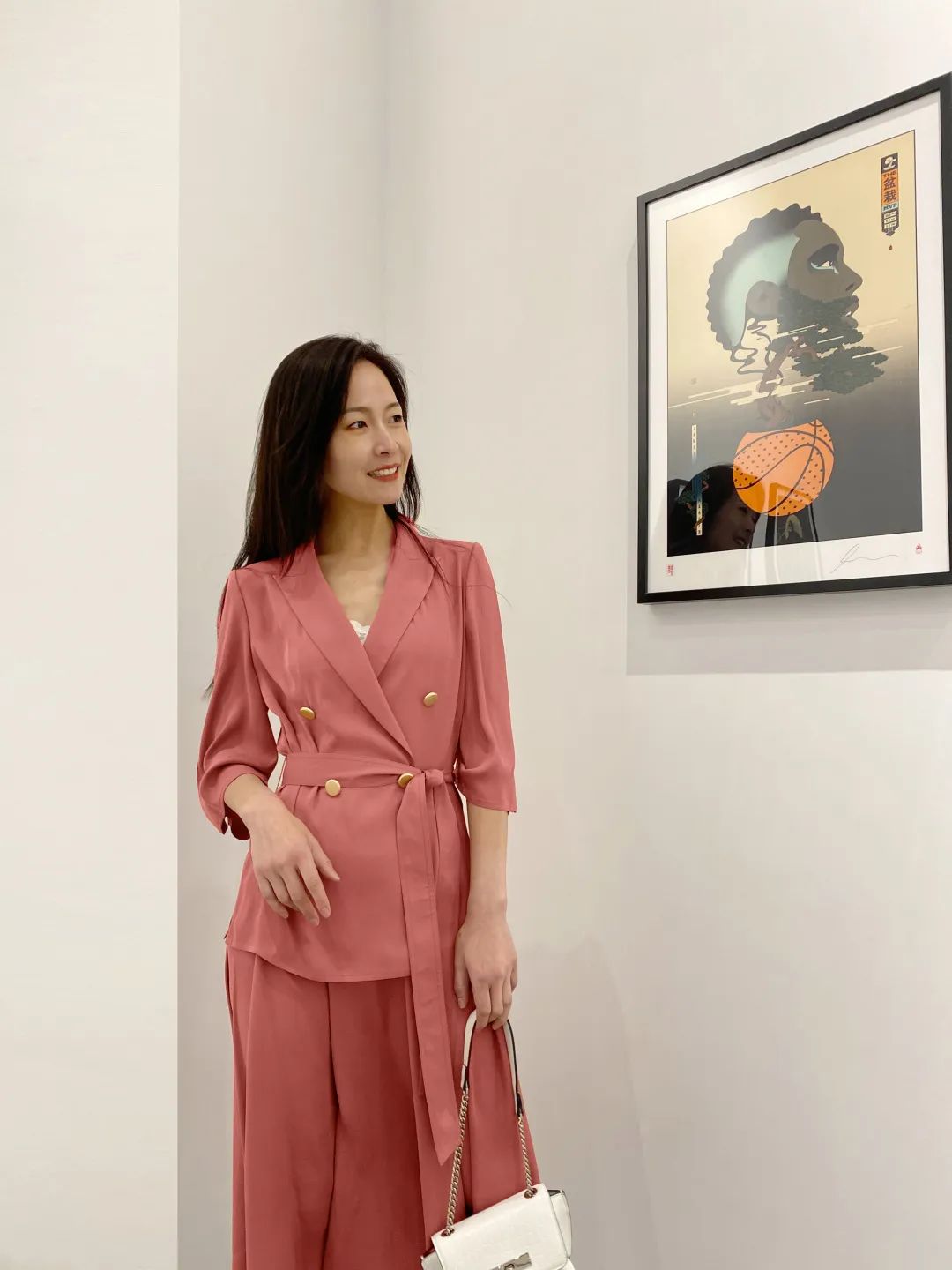 复古烟粉衬托灰框白墙,多了几缕苏北水乡的韵味。回廊里的文艺气息,镶嵌在后现代风的黑白画映里。