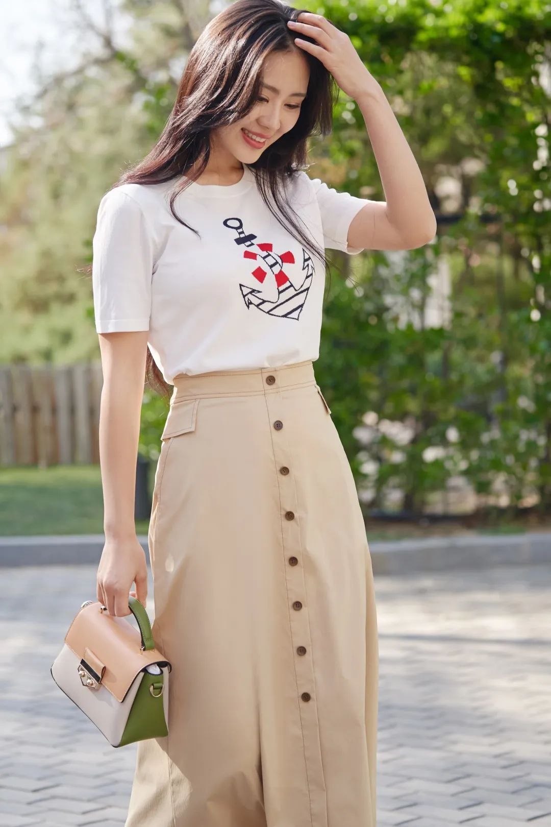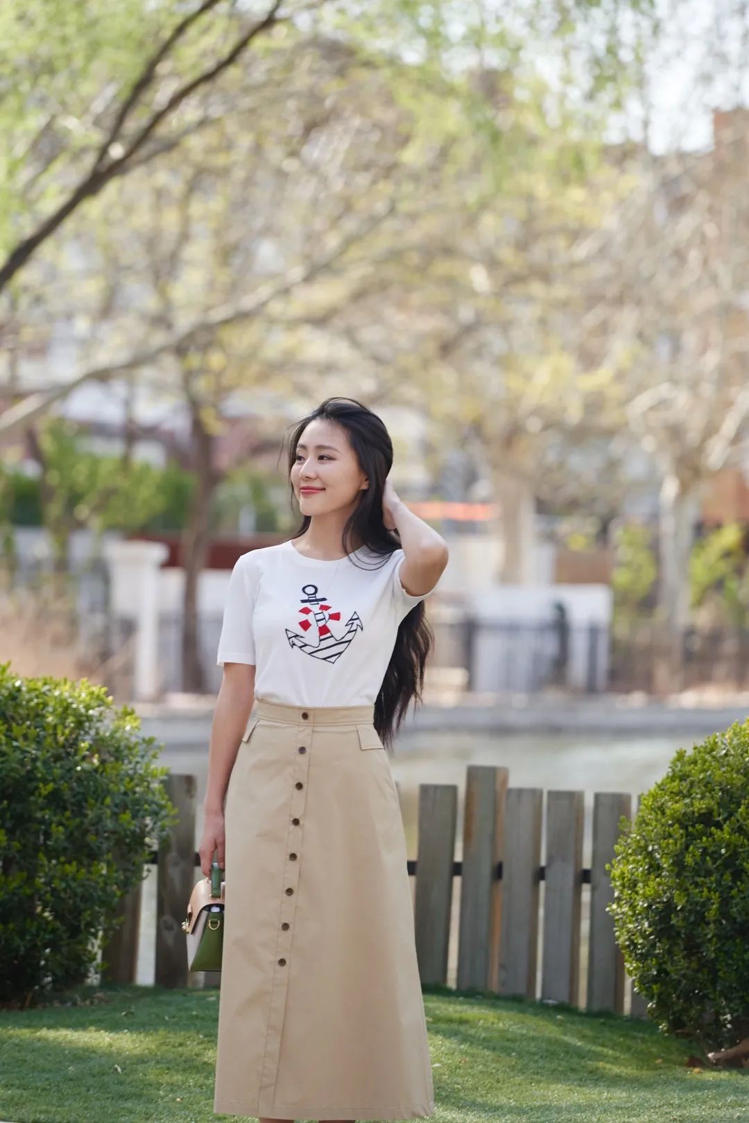 轻启船锚,即刻远航,你的卡其色半裙,把慵懒优雅荡漾在轻快步履里。