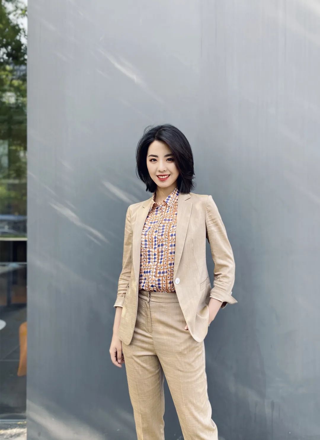 都市里的慢调通勤生活,足以维系小长假以后的余热。调音符印花搭配焦糖色西服,属于现代时髦的轻职场风。