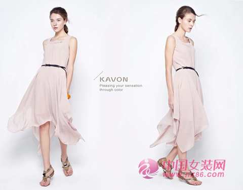 KAVON卡汶 2014夏季新款无袖A字不规则无袖长裙连衣裙