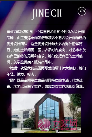 “JINECII婕妮熙”是浙江中创时装有限公司旗下核心品牌。