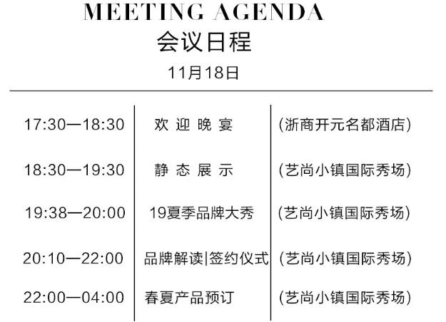 11月18日 20:10-22:00品牌解读及签约仪式(艺尚小镇)