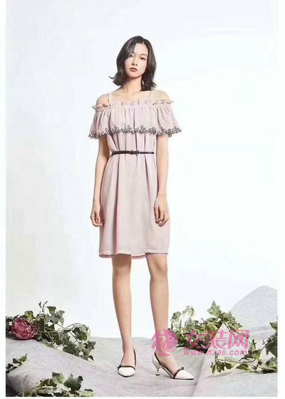 这条藕粉的连衣裙裙子整体是非常宽松的直筒版型,黑色腰带提高腰线,一字领口可以很好的修饰身材,宽大的荷叶边看起来非常梦幻甜美。