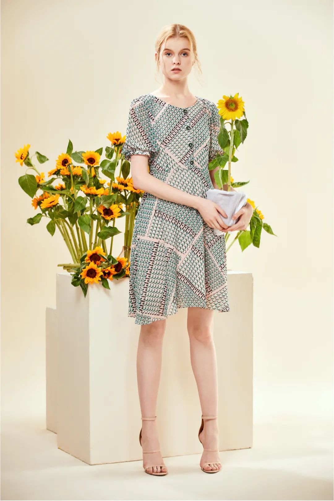 面料轻盈垂顺的法式连衣裙