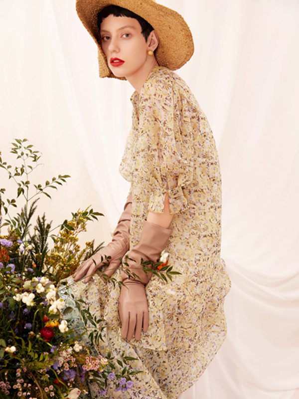 浅黄色碎花连衣裙,雪纺材质在夏天穿清爽与凉快之余也增加一点温柔与淡雅。腰间各有的百褶的拼接增加下摆围度下摆自然散开视觉有张有弛,节奏律动展现你优美曲线,同时抵挡不了裙身飘逸散发出来的柔美与风情。它将浪漫与时尚兼顾,而且还带着些许岁月的温柔,真心是很浪漫很有甜美的田园气息的!
