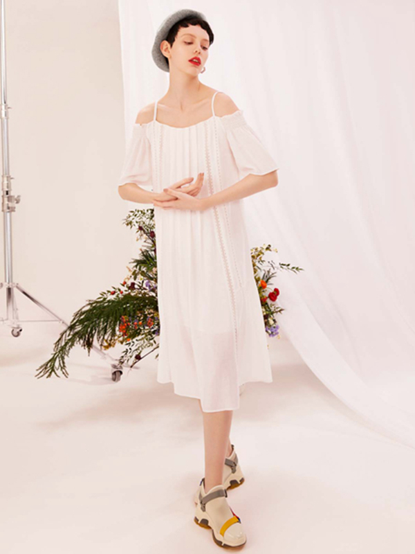 这种既休闲又有点酷酷的感觉的中长连衣裙穿起来给人很有个性的感觉,吊带加露肩的设计更显特色,整体看起来更加时尚了,简约的款式和版型设计看起来很休闲也很淑女的感觉。肩部采用了褶皱的设计,为整体添加了性感与淑女,这样的衣服穿出去逛街约会的最适合啦。