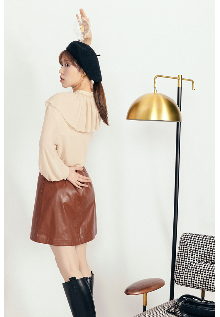 A字绵羊皮短裙俏皮显质感