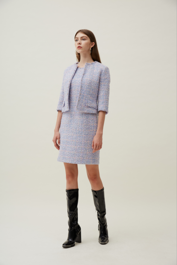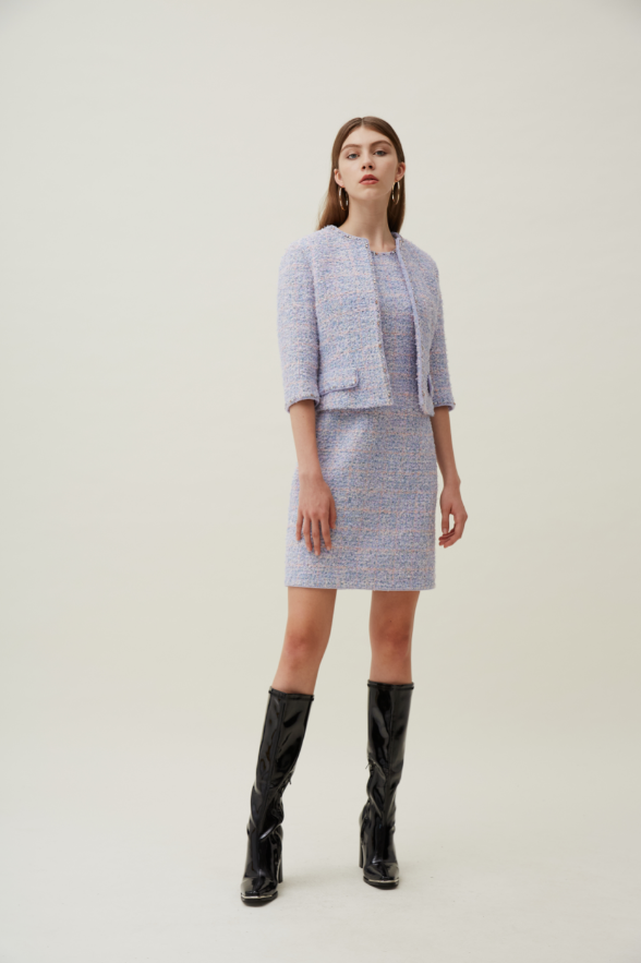 小香风不仅是一种穿搭风格,更是一种生活态度。小香风 = 永不过时的好看!精致的粗呢质感结合当下流行色,不变的立体版型散发不一样的光芒,让经典款服饰重新绽放生命活力!