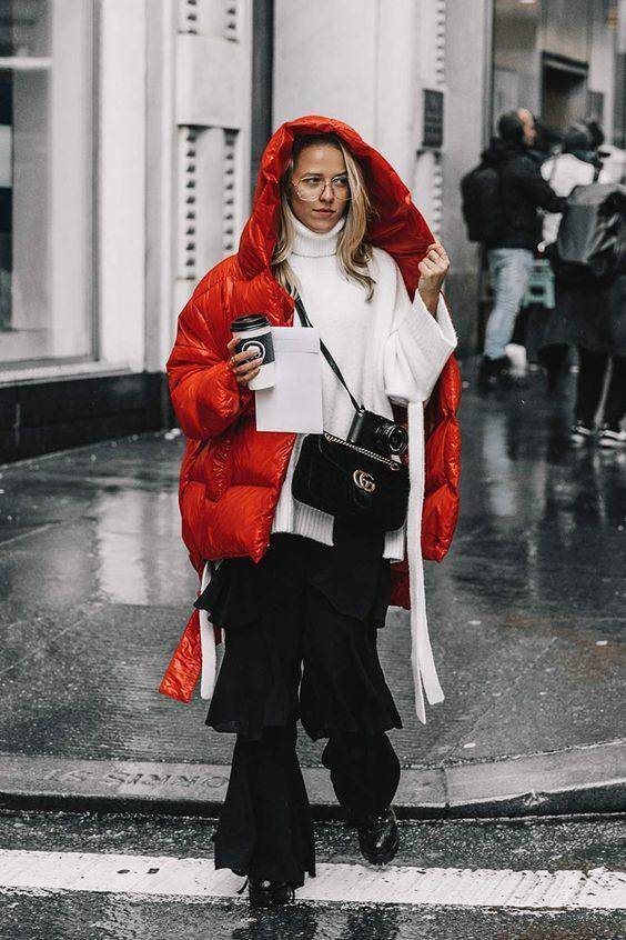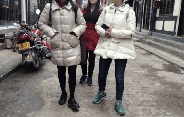 姑娘们也都纷纷搬出了抗寒利器—羽绒服