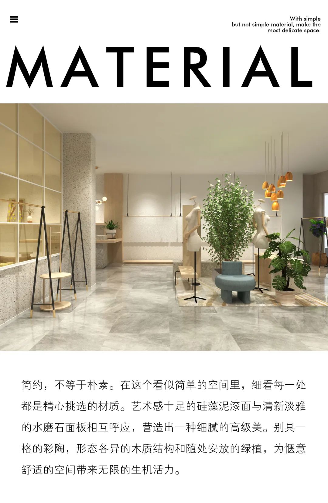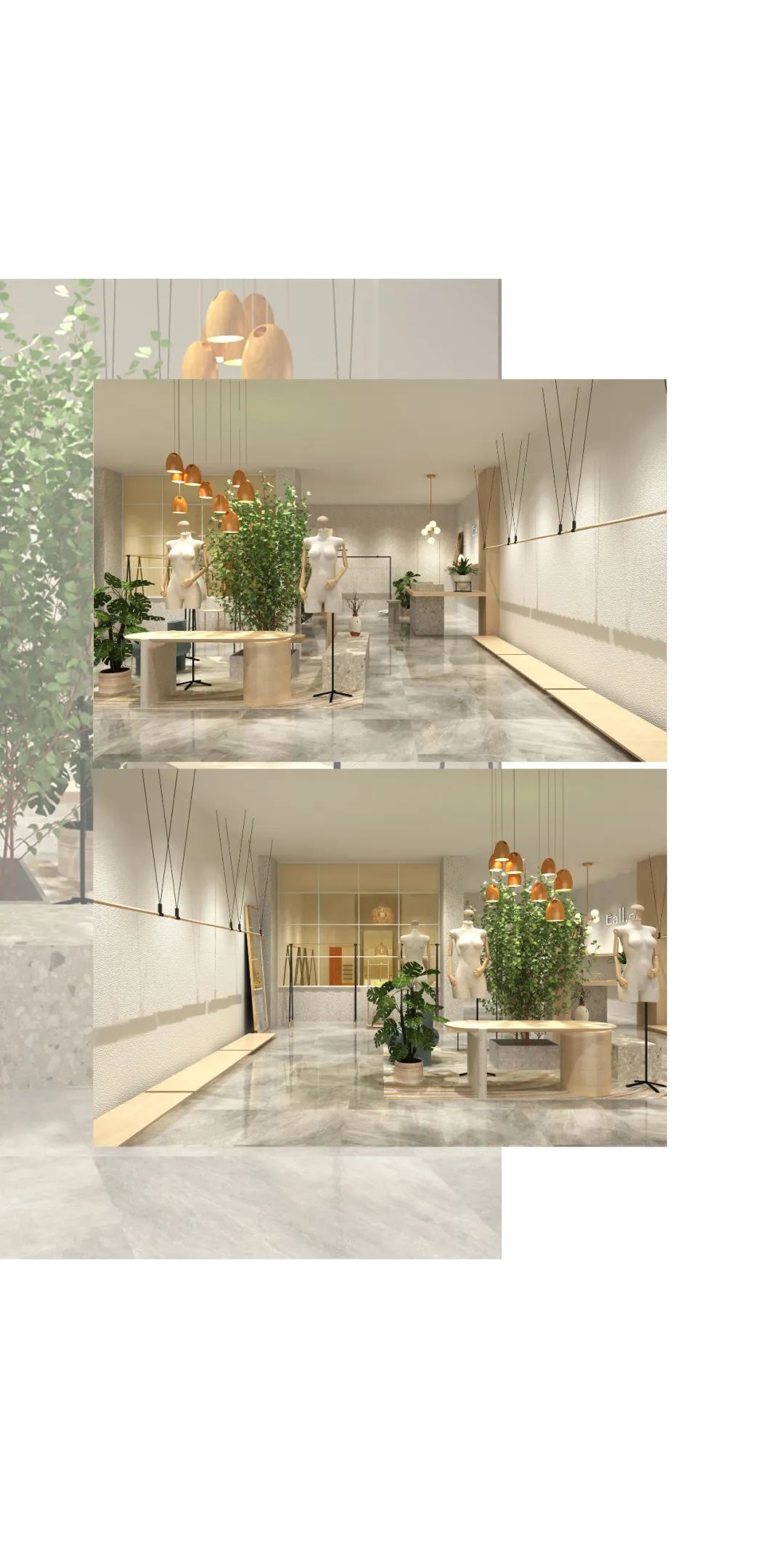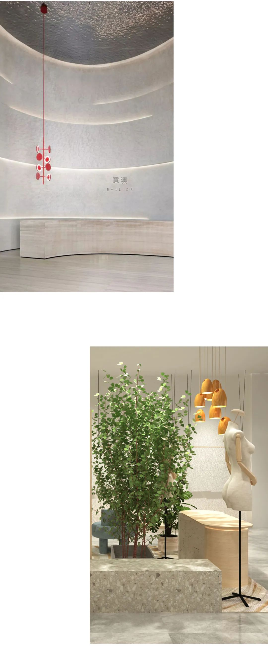 Eall.cz意澳本次空间形象升级,以意澳主张的“自由自在”“自然”“精致”为关键词,向外不断发散延伸,再结合当下现代人在面对各式各样的压力下,内心对简单舒适、自由自在无限渴望追求的现状。从中获得设计灵感,为喜欢意澳的家人们打造一个轻松自在的空间,让购物不单单是挑选货品而已,更多的是享受找到自己心爱衣物过程中的那份感动愉悦。