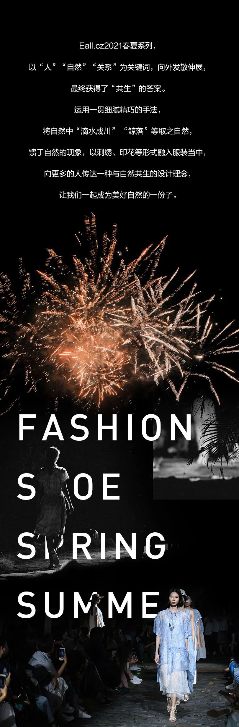 告别固有的形式,以轻松舒适的方式向世界表达真实的自我,纯粹的享受一场时装秀所带来的感动与乐趣,更是一次对人与自然间关系的反思与改变。2021 EALL.CZ 春夏,一起热爱自然,成为美好自然的一部分吧。