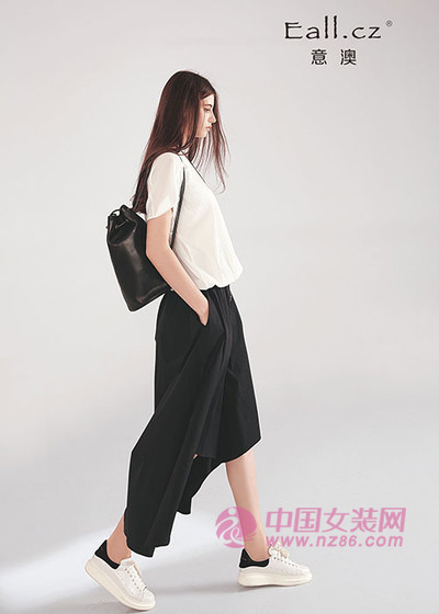 在穿搭时,可以选择一些富含小心机元素的款式来增添小清新感。白色上衣搭配黑色色不规则半裙,飘逸的群被,会更加有质感,经典的黑白搭配,温柔大方。