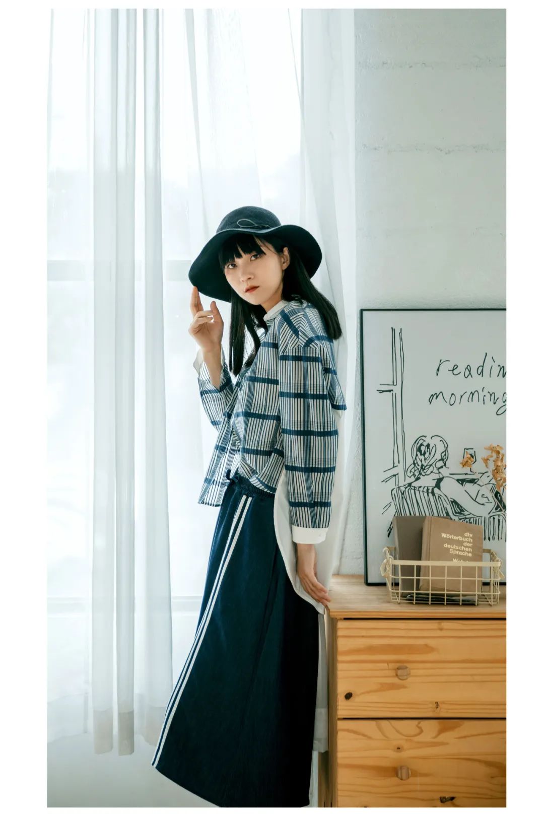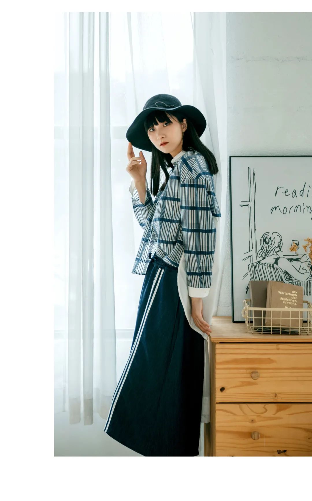 永不落幕的经典格纹,在不变的定律中寻找变奏,重塑一种新风潮。由深邃静谧的午夜蓝与纯粹包容包容的白色纵横交汇,构建了克制且率性的秩序美。轻盈柔软的面料,灵动飘逸的下摆,步履间平添一丝飒爽。