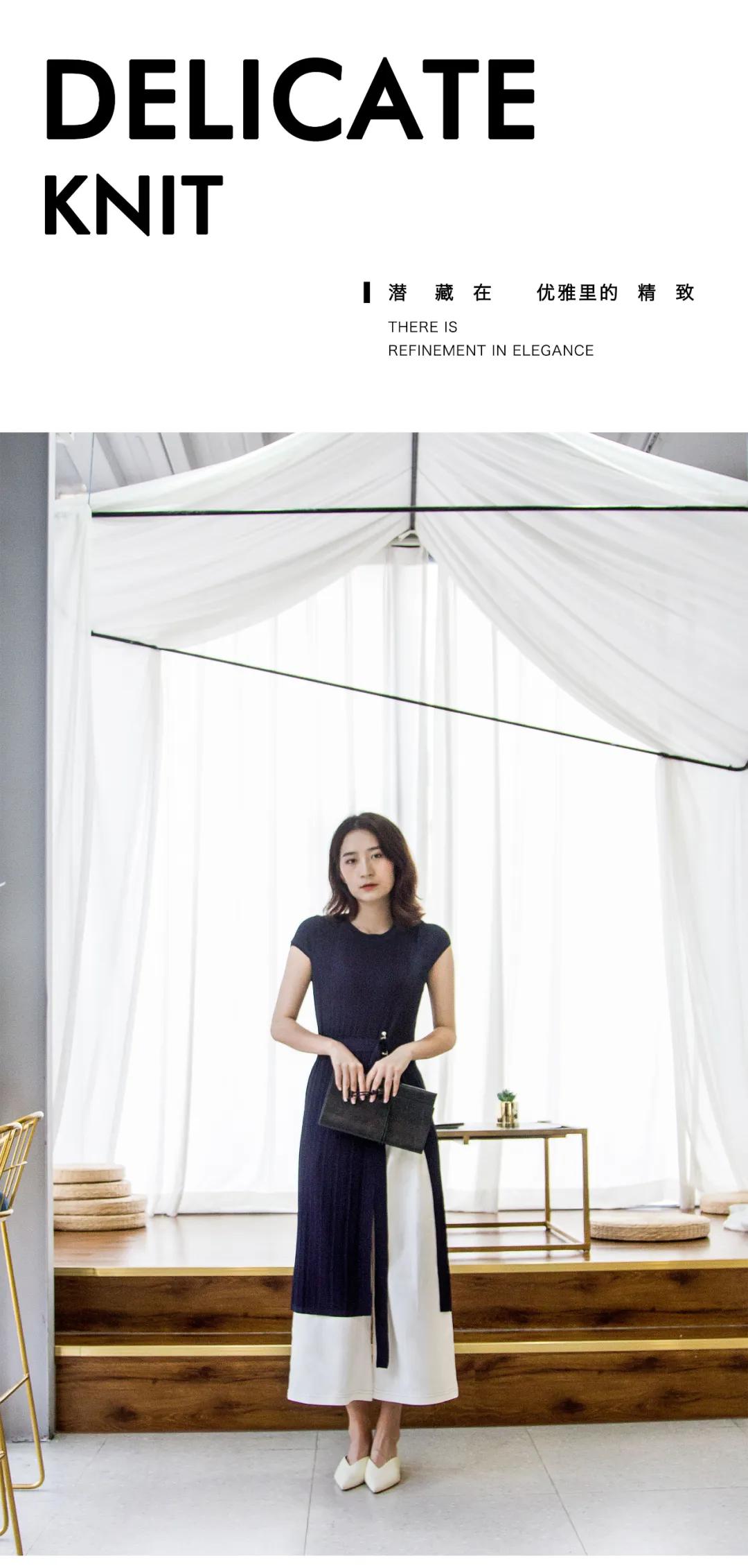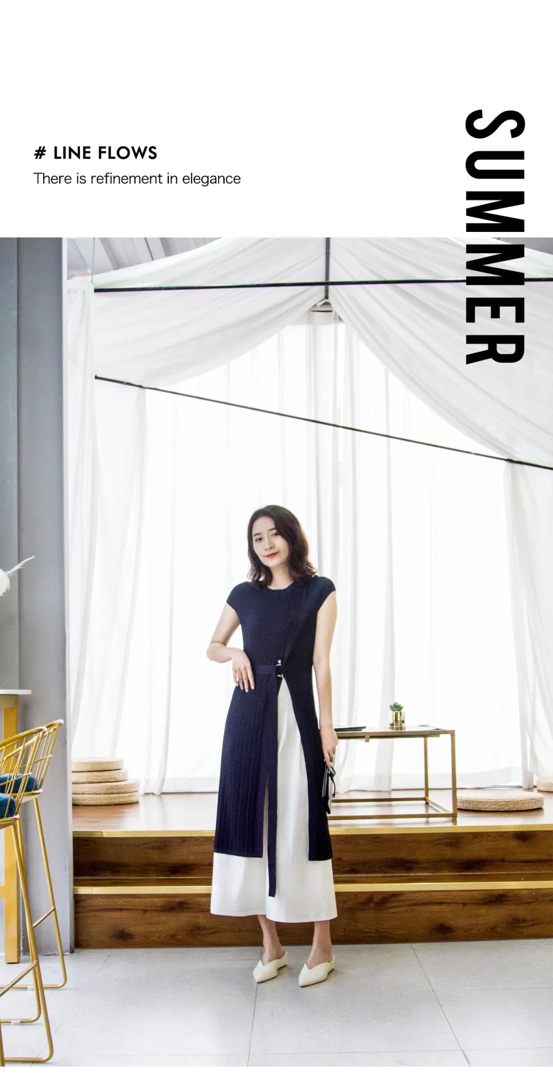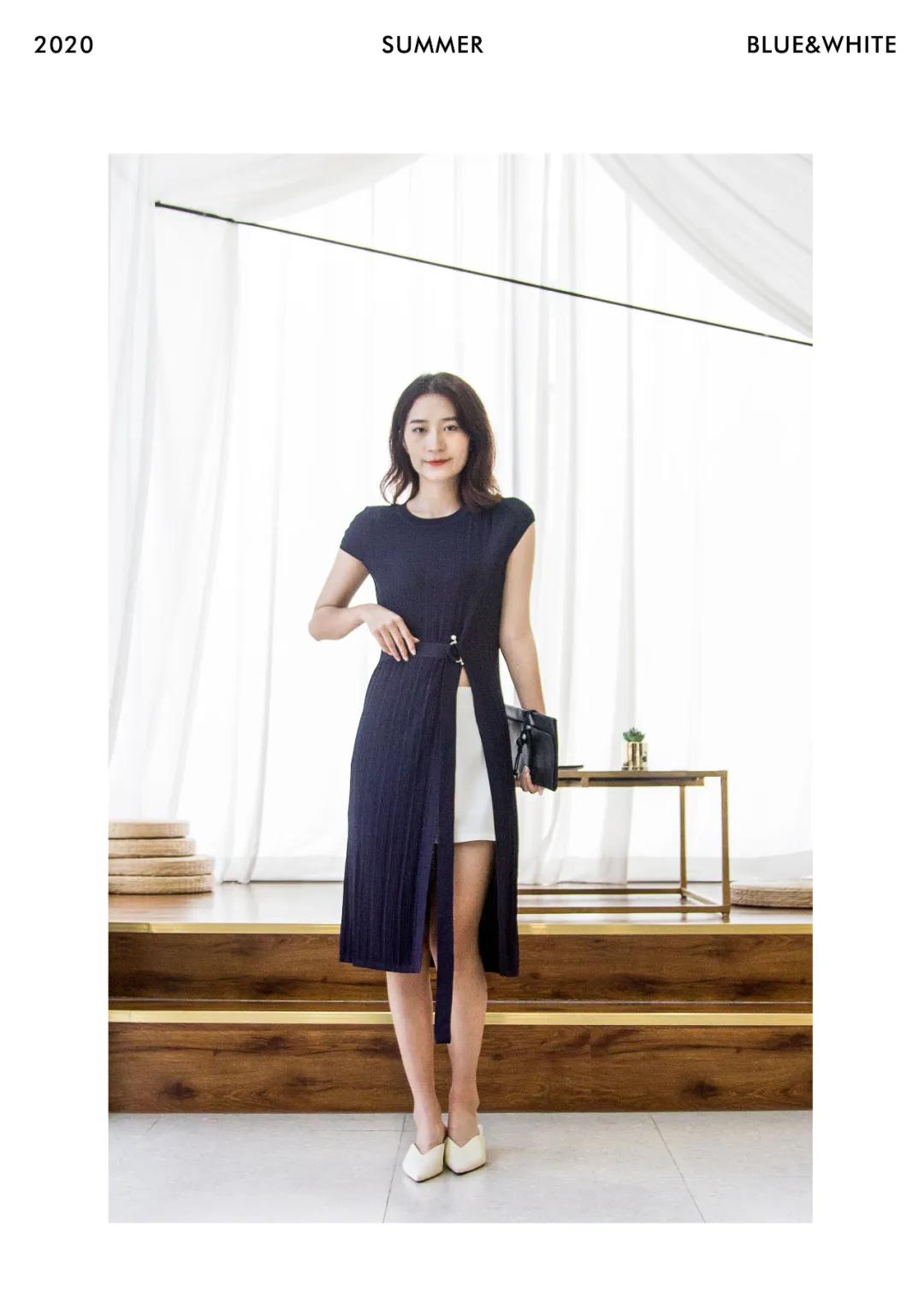 当藏蓝色连衣裙邂逅纯白色阔腿裤