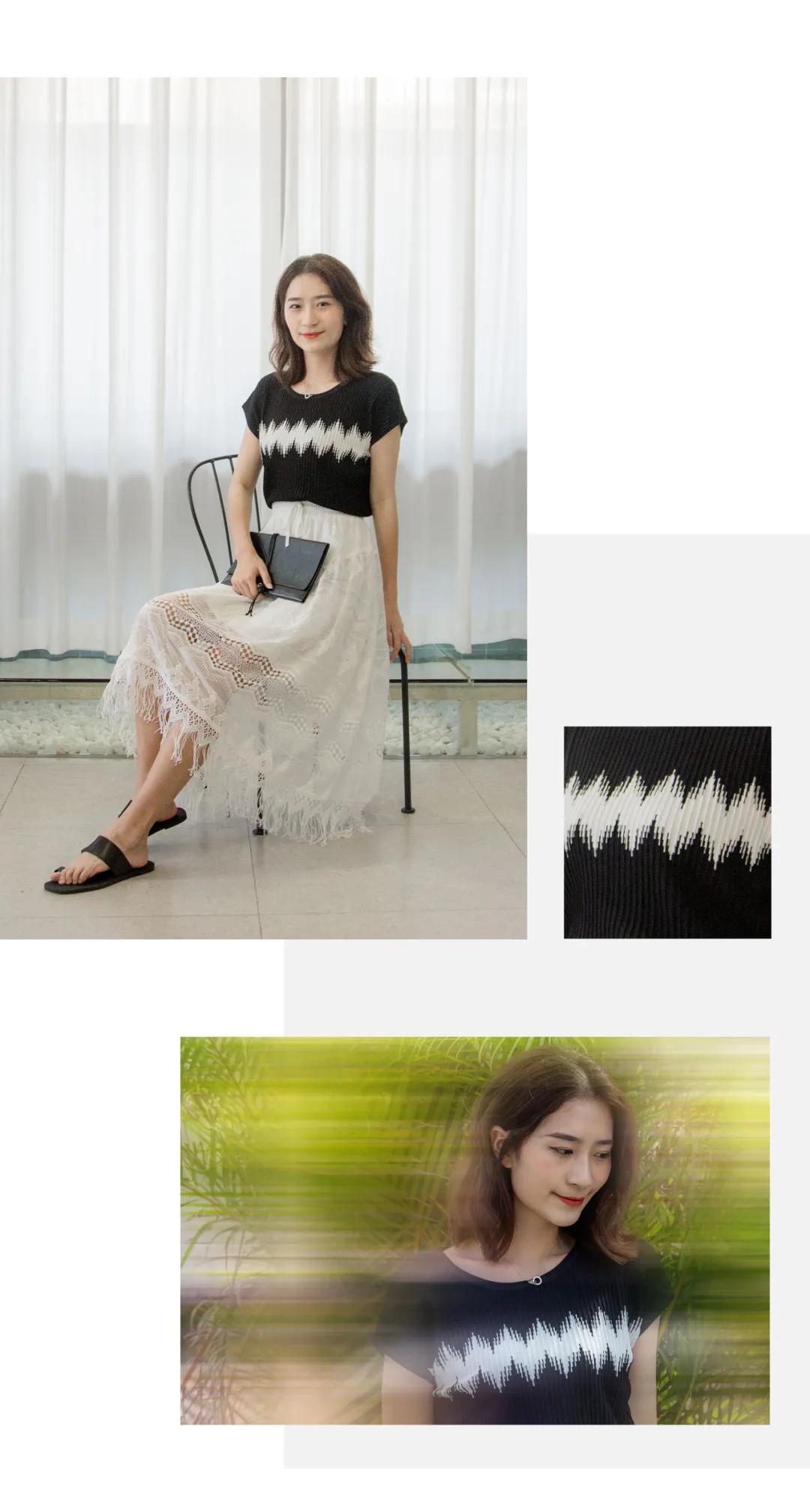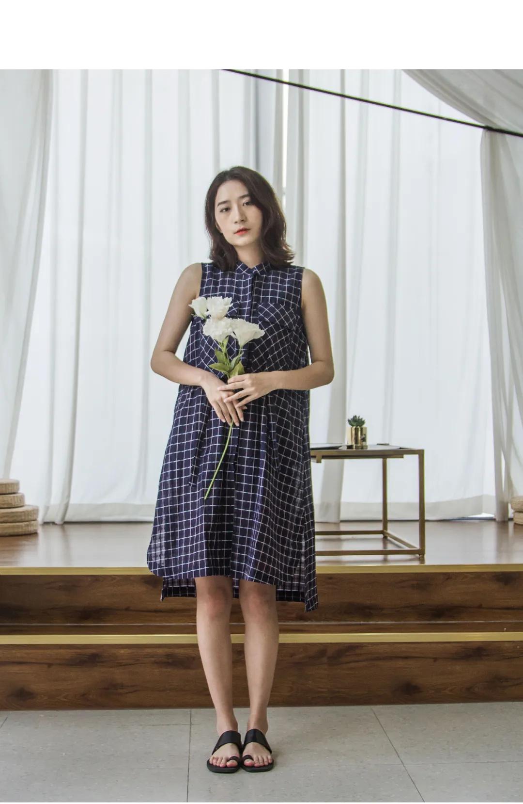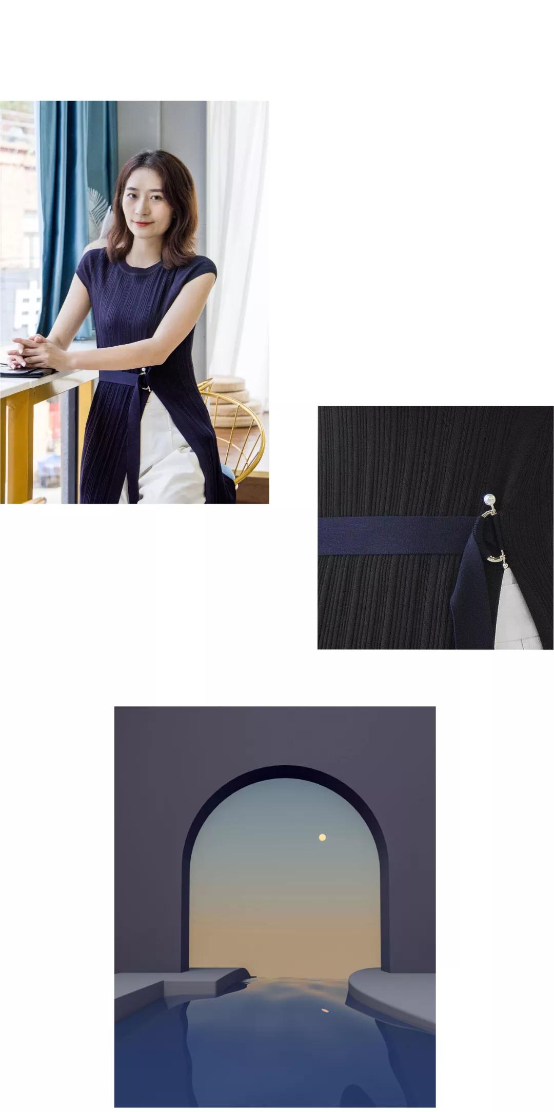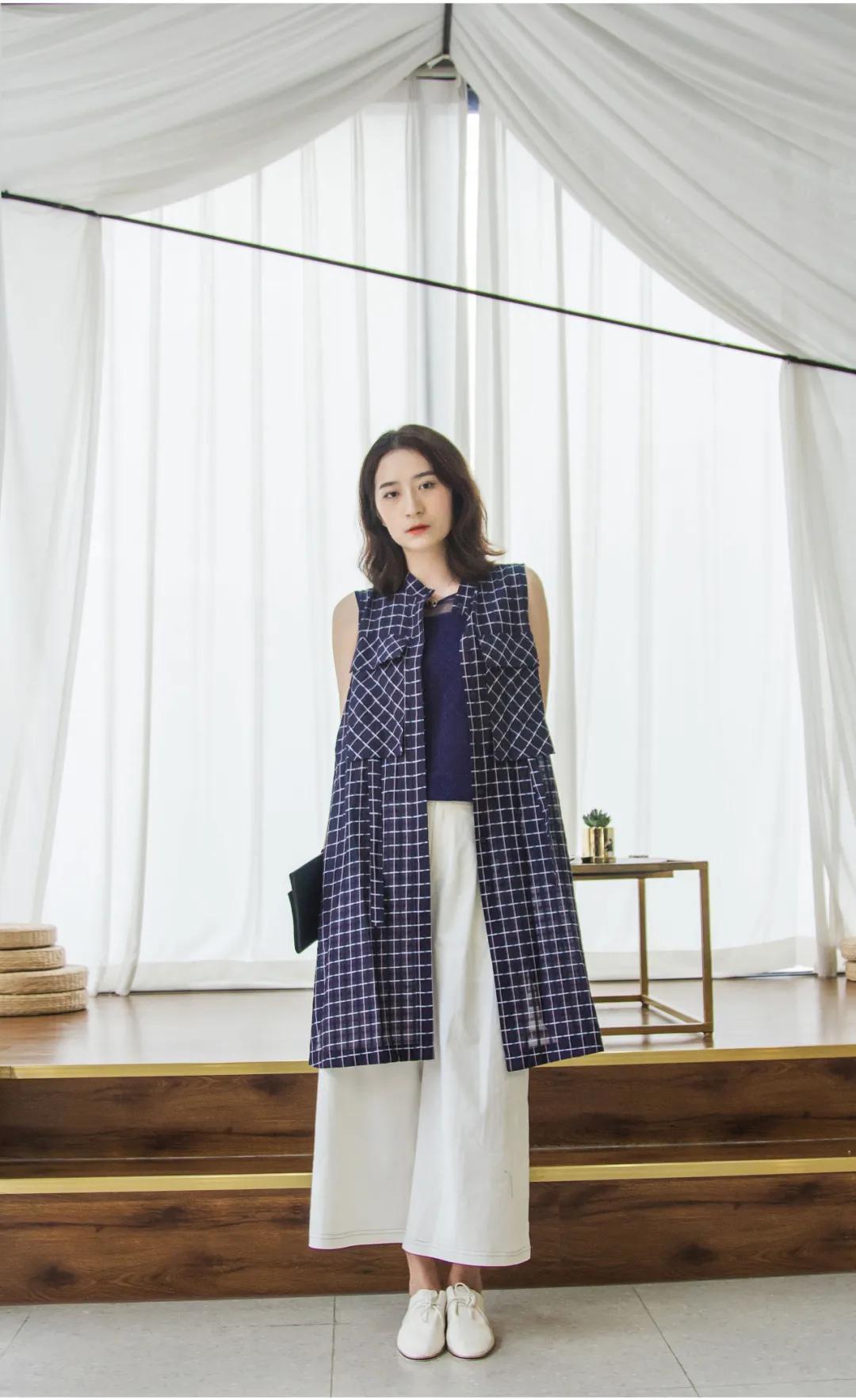 当藏蓝色连衣裙邂逅纯白色阔腿裤