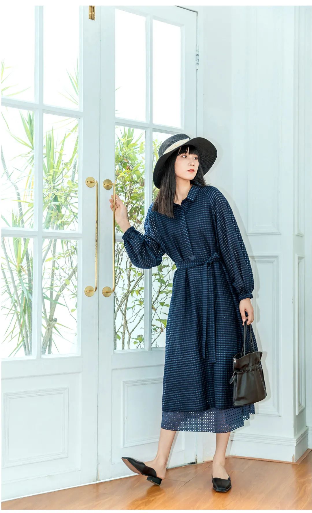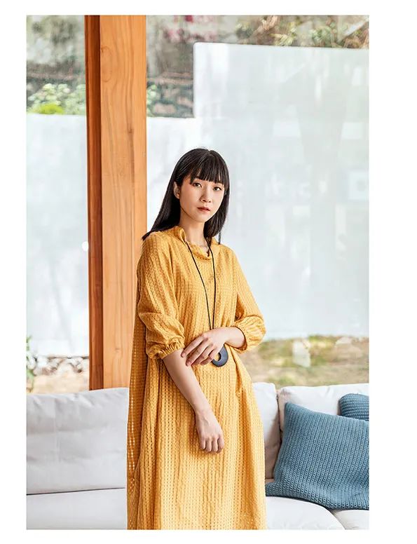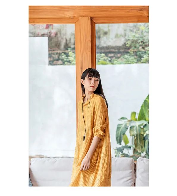 过去纯粹的条纹图案,以全新的姿态呈现。沉稳典雅的连衣裙,在光的照映下,一下子变得通透轻盈起来。