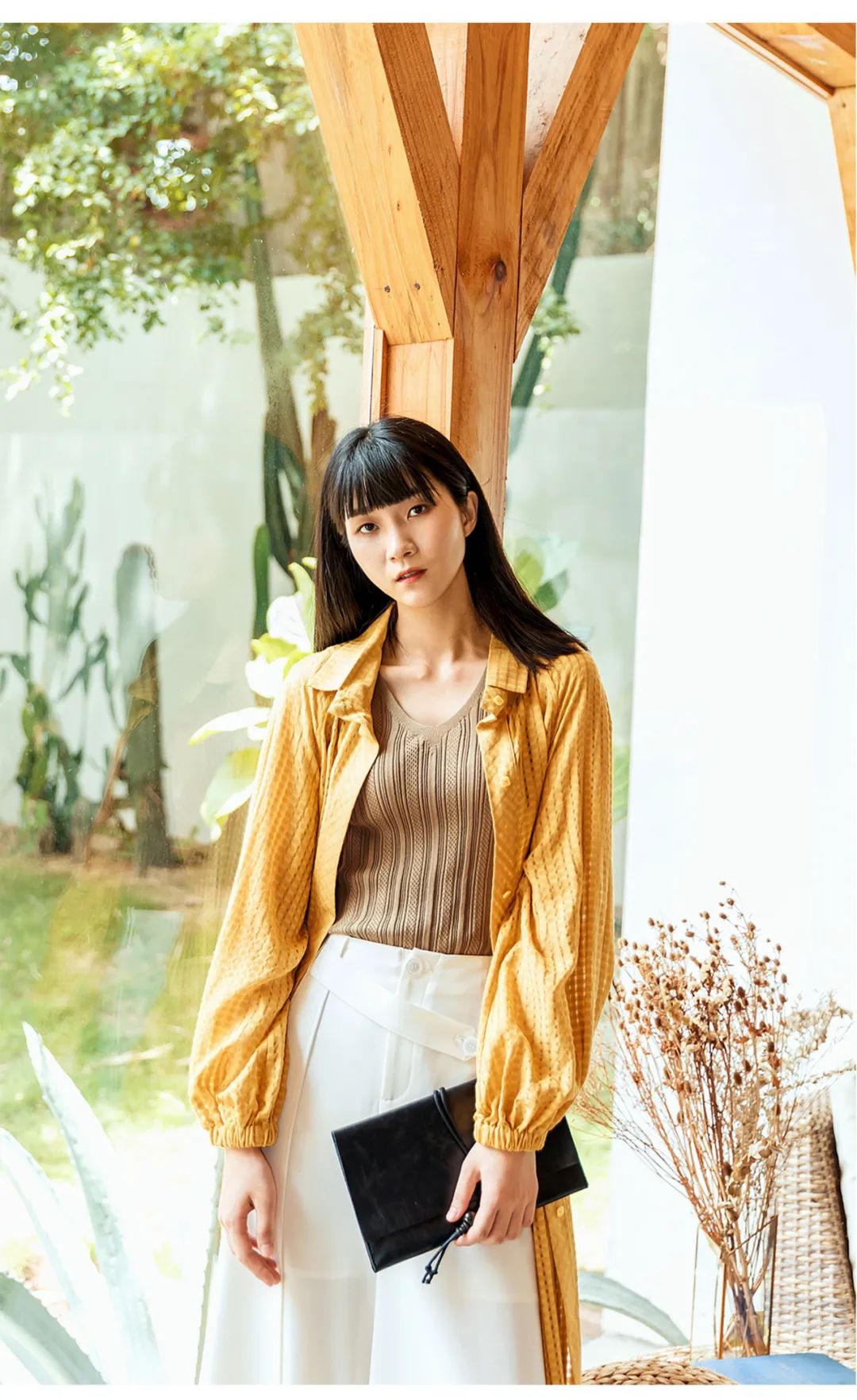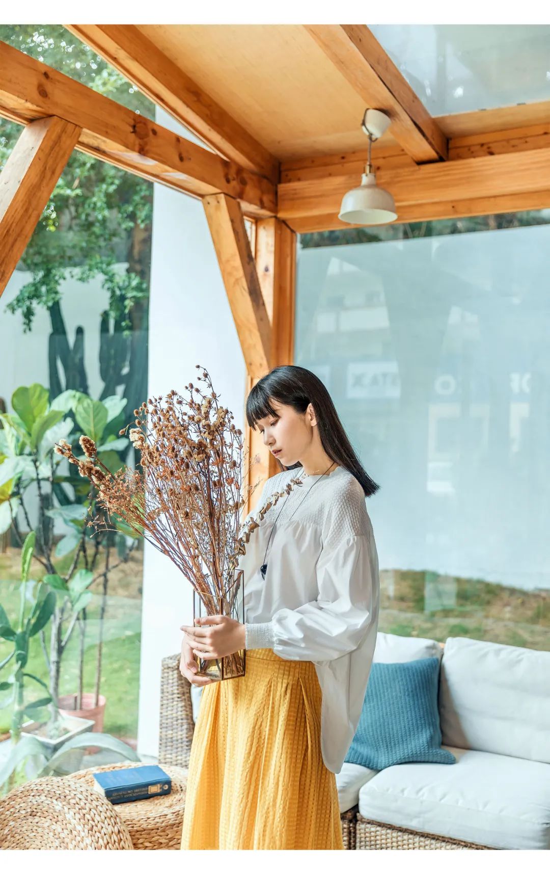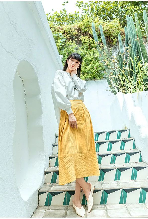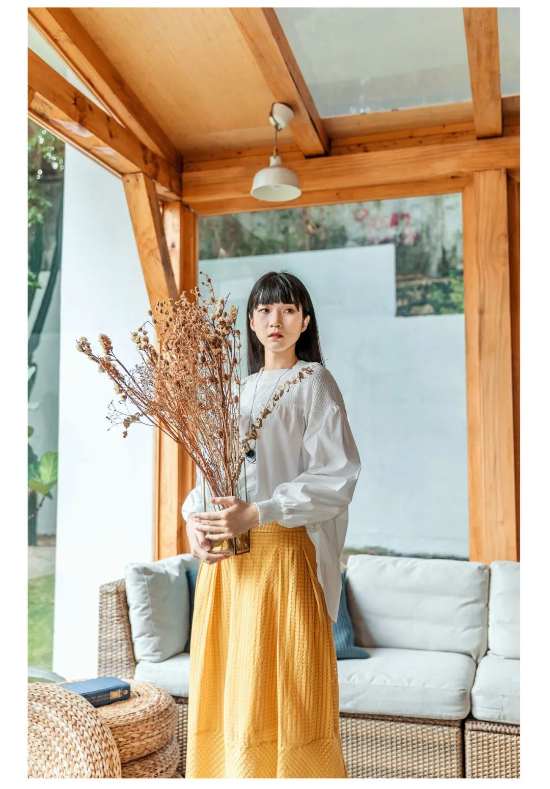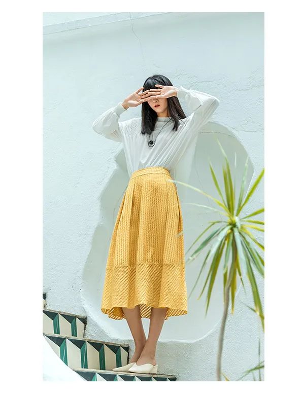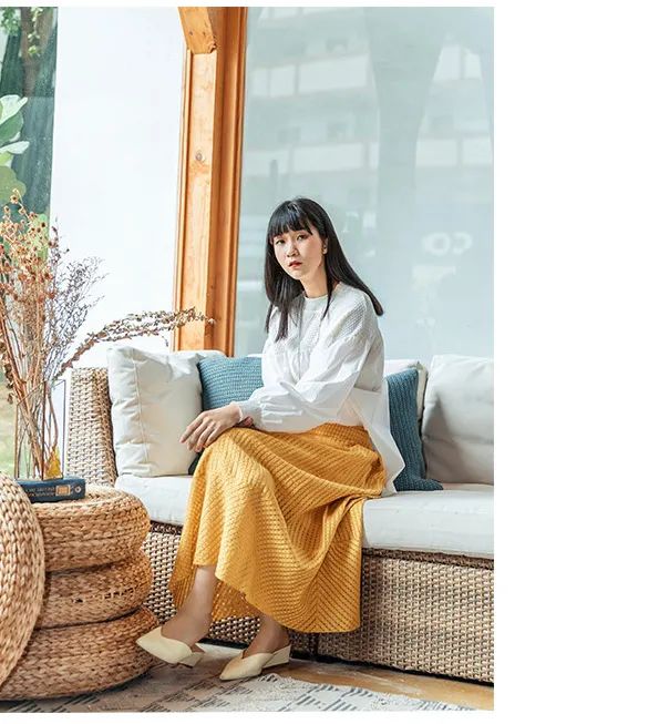 衣身下摆的抽绳设计,造型感十足,搭配层次丰富的半裙。糅合了秋日的浪漫气息,时髦率性中不是甜美。