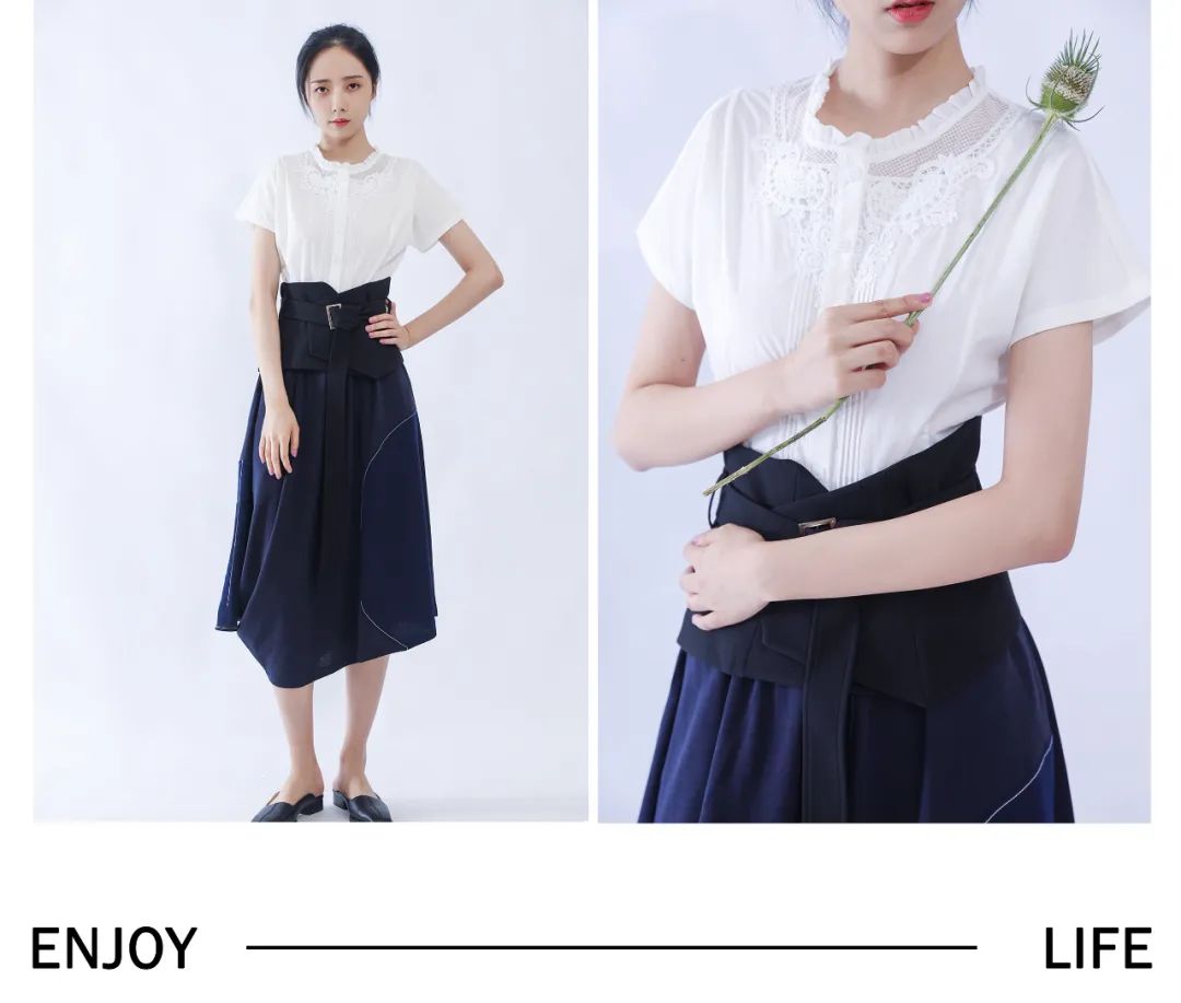裙摆飘逸勾勒柔美情怀,为造型注入温柔畅想。Elegant skirt outline soft feelings, for modeling into a gentle imagination.