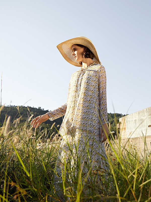 这款印花穿搭也很好看哦,采用优质的面料制作而成,清凉舒适,垂坠感十足,看起来很是迷人,这款穿搭版型的设计很是好看,将自己的优雅气质展现出来,搭配一双低跟鞋,整体的造型又大方。