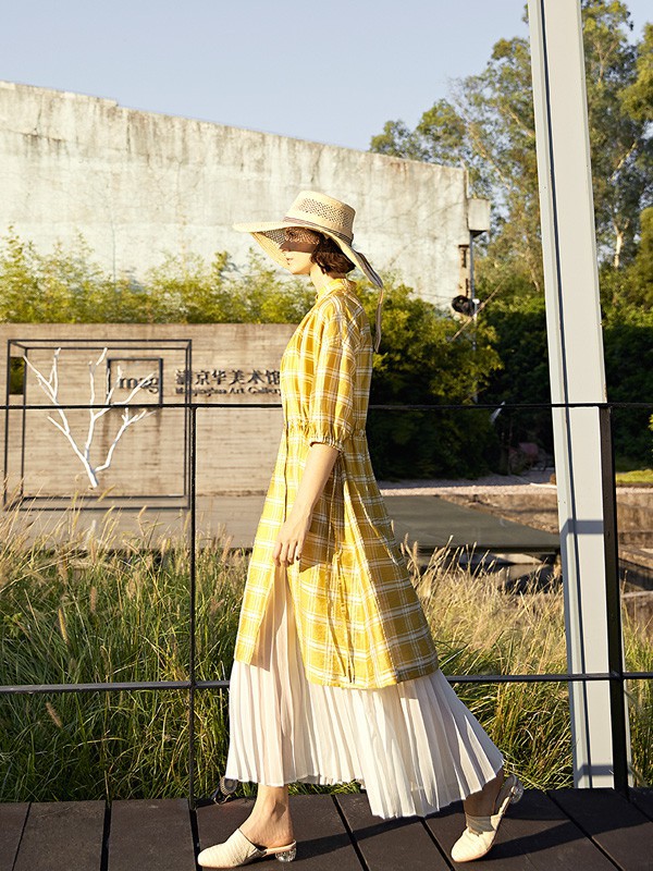 这款格纹连衣上身以后气质佳,衬肤色,黄色得颜色清新简约,格纹在任何时候都不会过时,版型是很修身的,让自己看起来很高挑迷人,裙摆采用白色百褶的元素搭配格纹连衣裙,两者拼接在一起很是好看。
