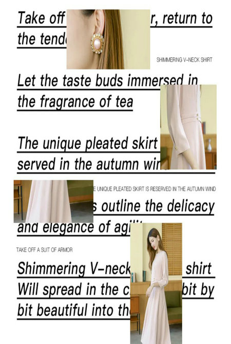 褪去一身铠甲,回归内心的温柔,让味蕾沉浸在馥郁的茶香里。独特的裙摆是摇曳在秋风中的矜持,诗意线条勾勒灵动的精致与典雅。闪烁细腻光泽的衬衣,将蔓延在衣着里的点滴美好融入生活。