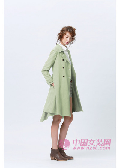 青苹果的色彩清新淡雅,甜蜜中带着酸涩,纯粹中不含一丝杂质,而我们的青春就是这样的。风衣采用长款样式潇洒自由,随意的剪裁透露出不受拘束的本性,不管怎样搭配,你都能展现出你最清纯的一面。