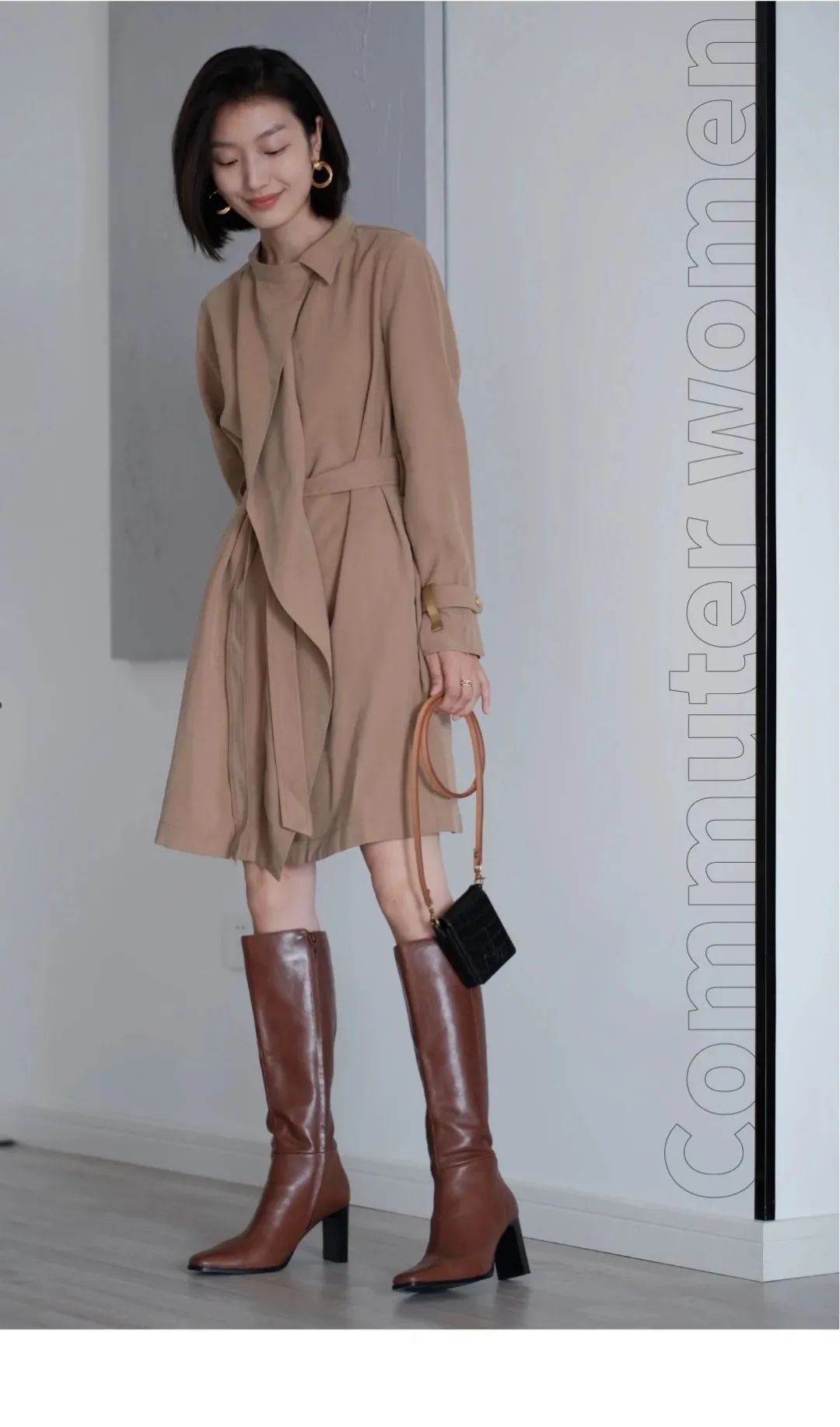 LOOKB:大地系顺色搭配塑造非性感OL,通勤日常不妨将紧身短裙换成高级羊毛面料西裤,干练不一定要紧张, 舒适自信才应该是当代职场女性常态。