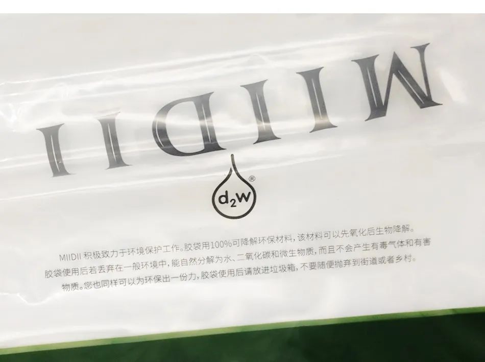 除了在制造环节选用环保材料以外,MIIDII谜底衣服包装所用的胶袋选用了***可降解环保材料,该材料可以先氧化而后生物降解。胶袋使用后若丢弃在一般环境中,能自然分解为水、二氧化碳和微生物质,并且不会产生有毒气体和有害物质。当然,提倡大家为环保出一份力,胶袋使用后请扔进垃圾箱,不要随便抛弃到街道或乡村。