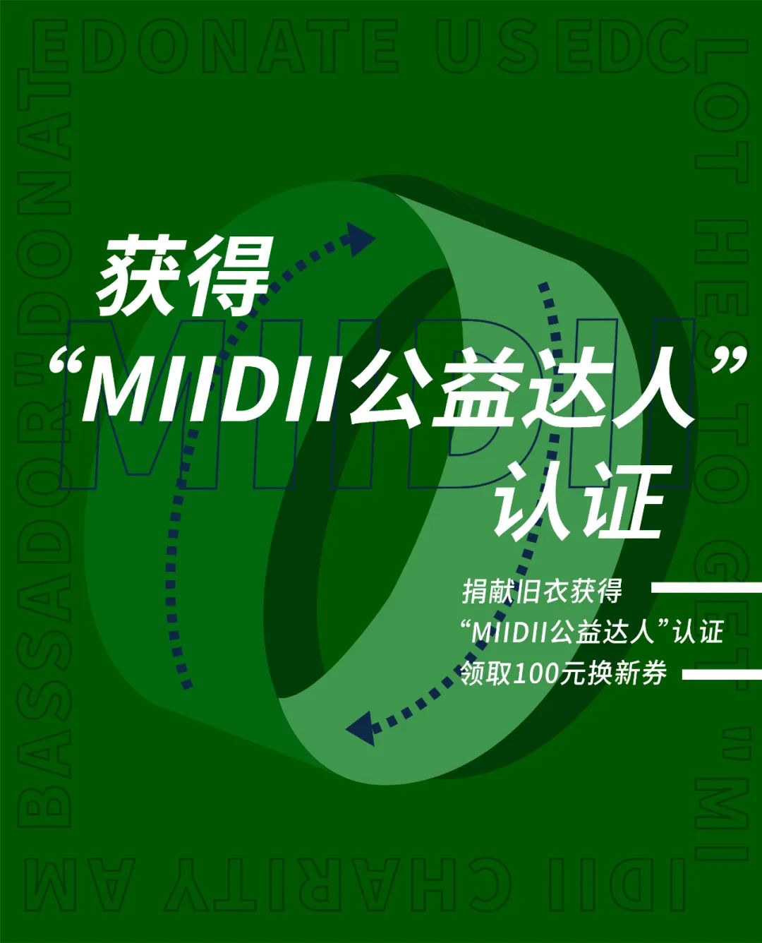 将不再使用的旧衣服,送到指定MIIDII门店或选择线上回收方式,即可获得:
