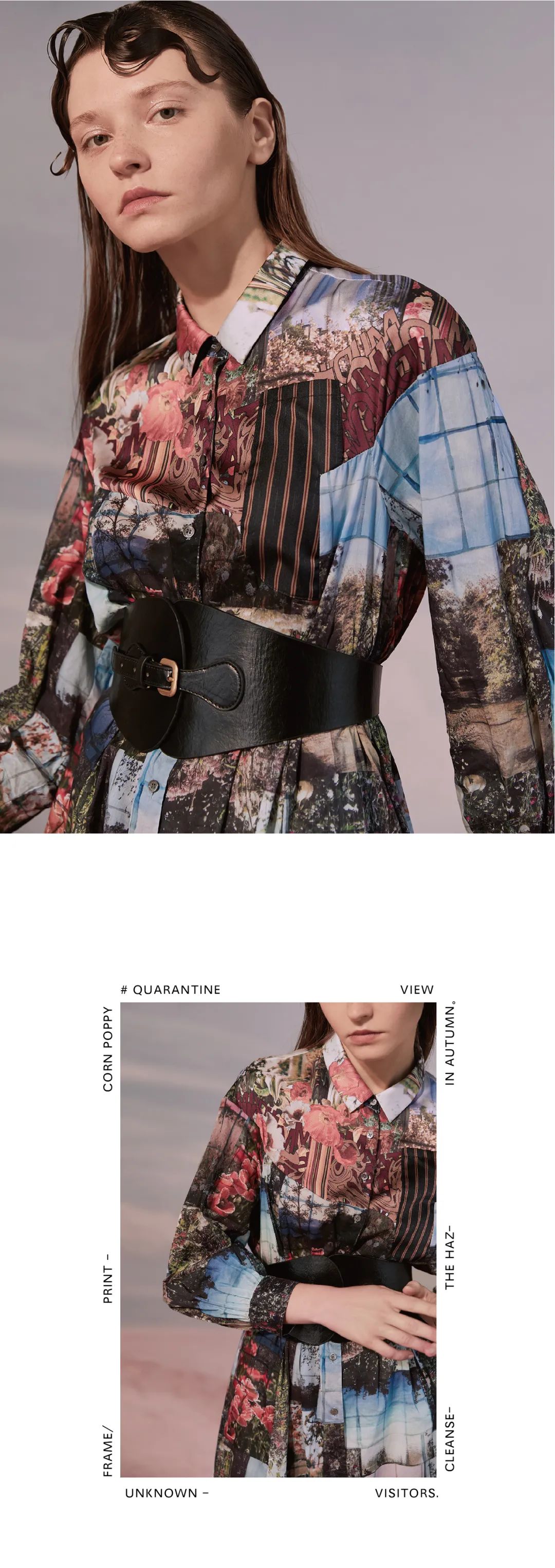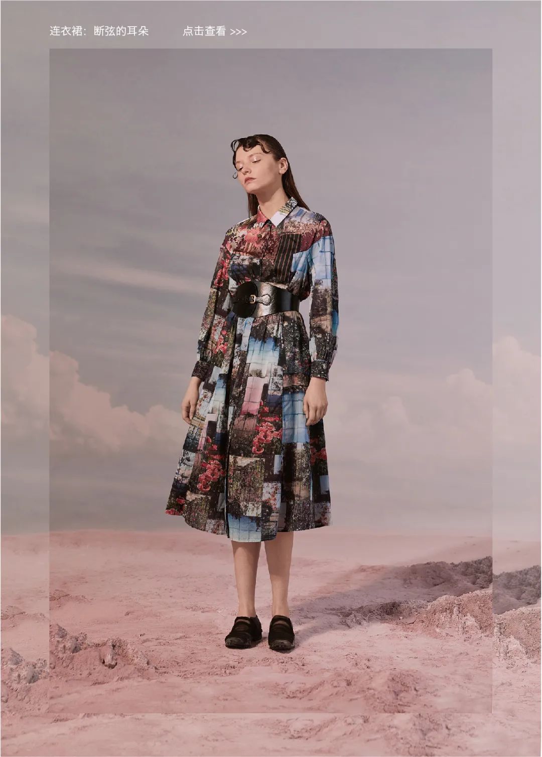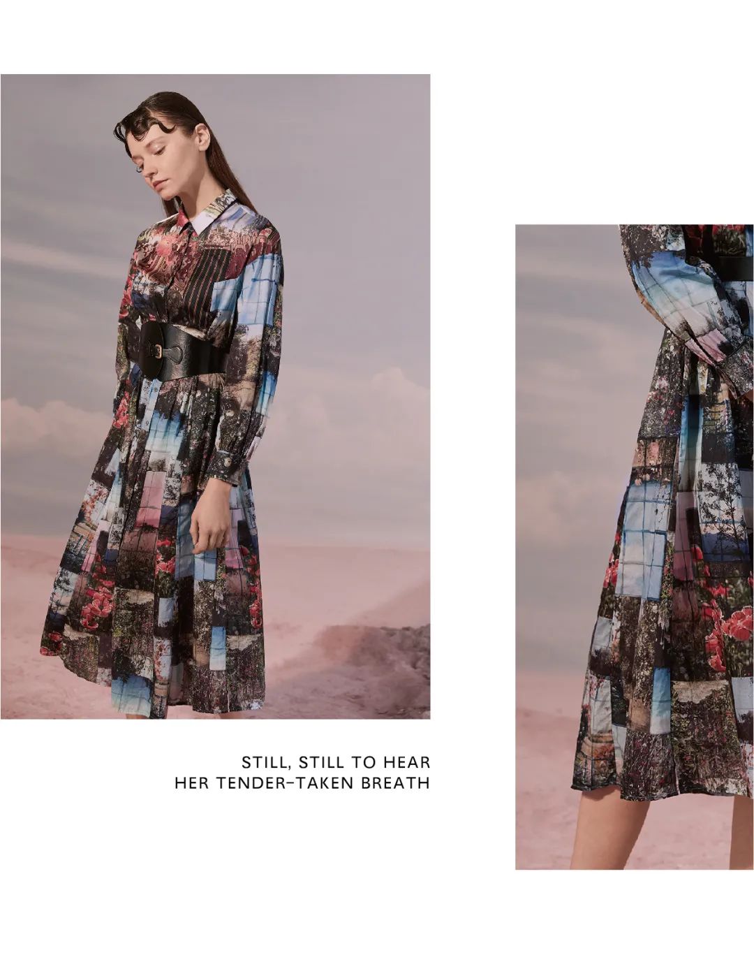 MIIDII谜底20/A虞美人主题印花以风景拼图与窗格线条结合