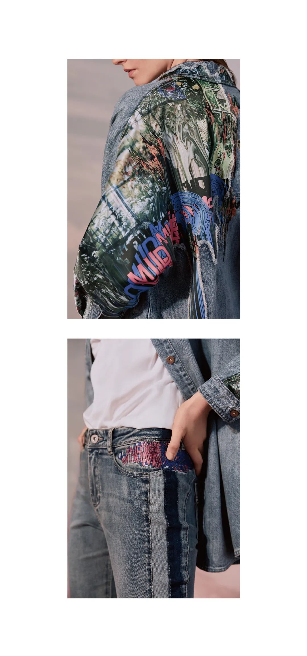 流动挥洒于洗旧牛仔上炫彩字母带来复古时髦气息