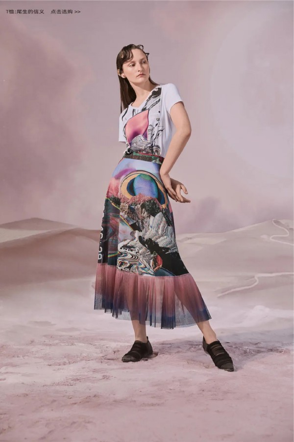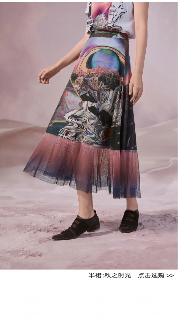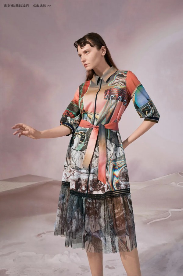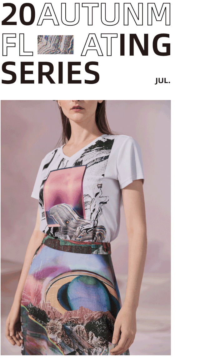 MIIDI 20A「漂浮系列」以极光这种奇妙的午夜光辉为印花元素,渐变色彩与抽象的宇宙万象巧妙融合,现实的影像数字突破理性的逻辑,超现实主义风格娓娓展开。如在残梦中捕捉女性的神秘瞬间,共书一首星空之下的幻想诗。
