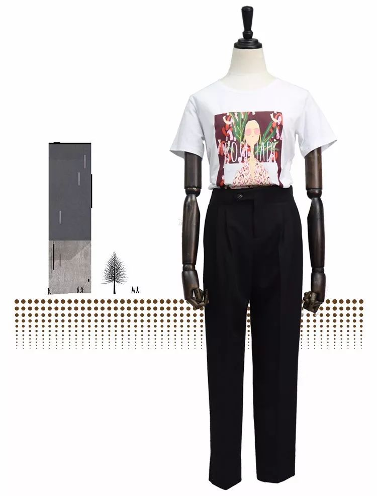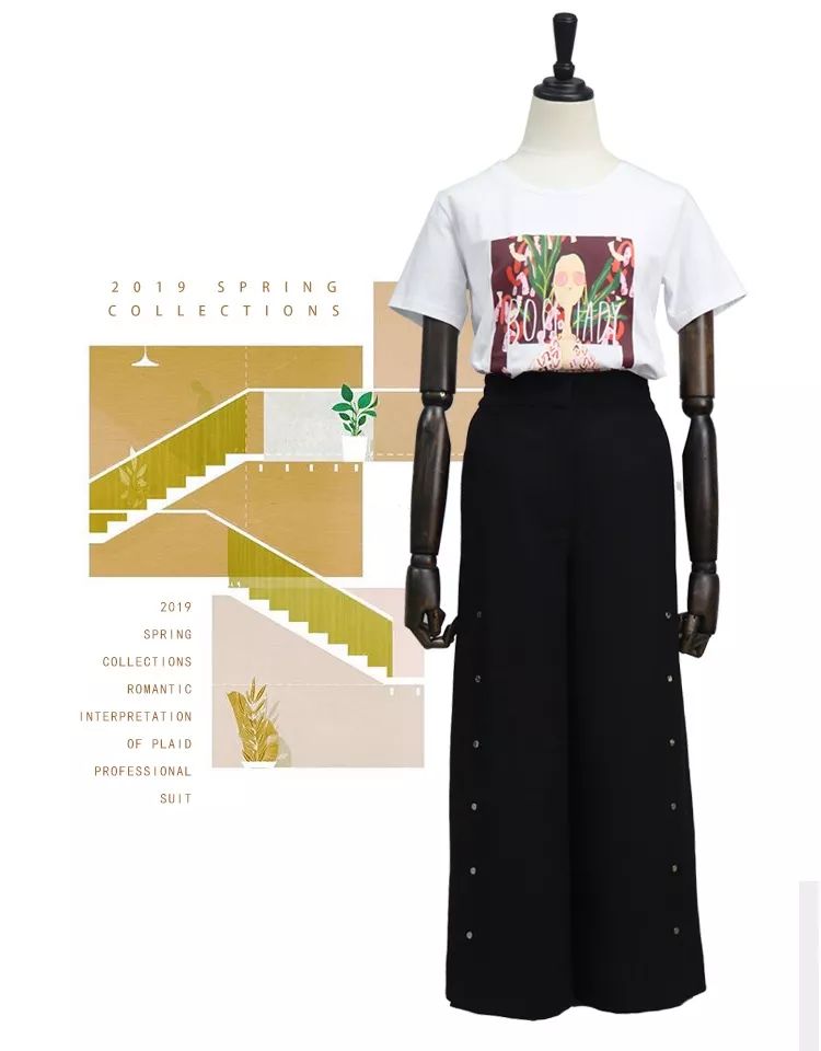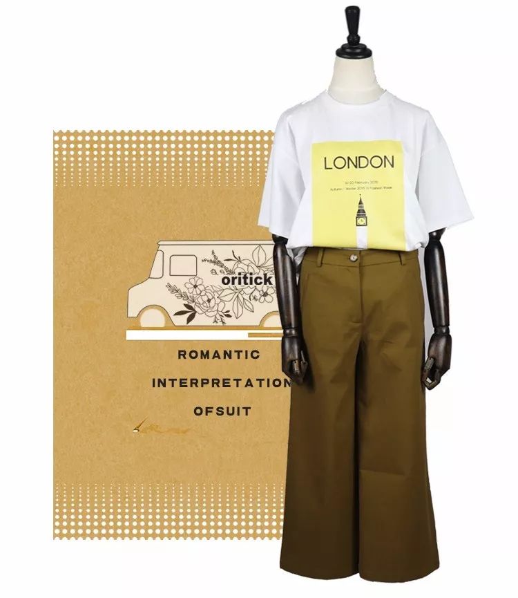 如果大腿的肌肉线条比较明显,不妨选择T恤与阔腿裤修饰