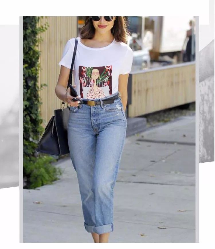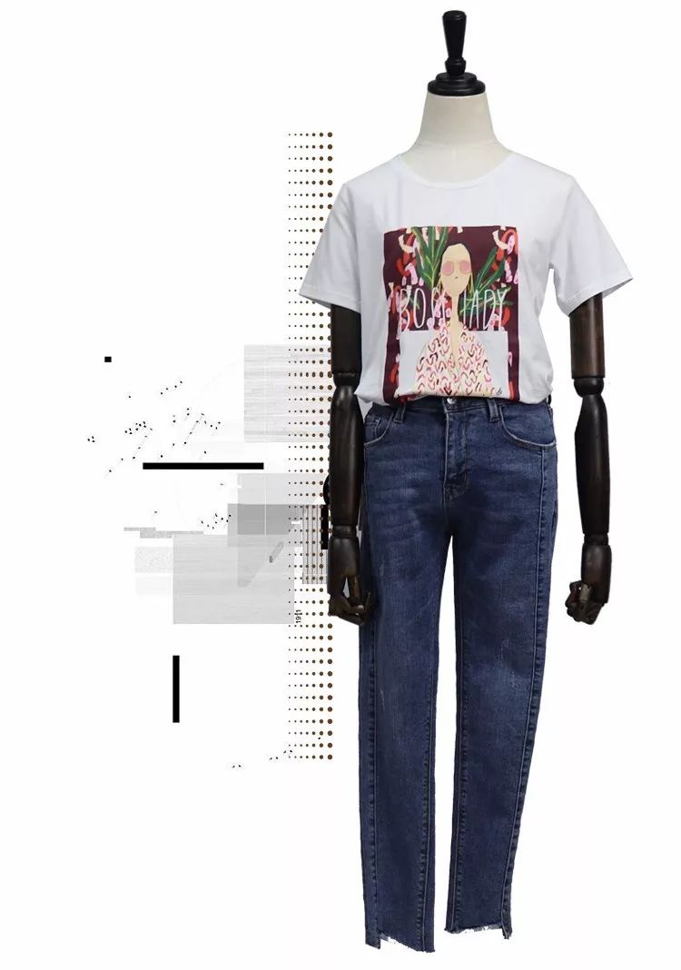 少女图案T恤搭配浅色牛仔真正诠释 越简单越经典