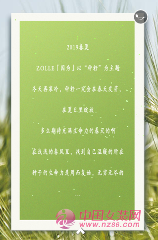 本次因为女装2019年春夏新品订货会以“种籽”为主题,冬天再寒冷,种籽一定会在春天发芽,在夏日里绽放。多么期待充满生命力的春天啊,在浅浅的春风里,找到自己温暖的所在,种子的生命力是周而复始,无穷无尽......