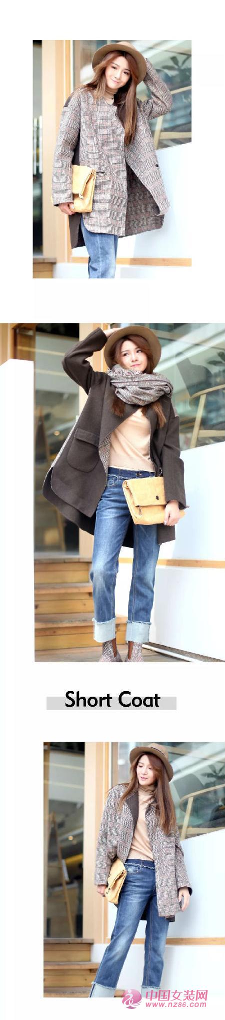双面呢拼接格纹短外套