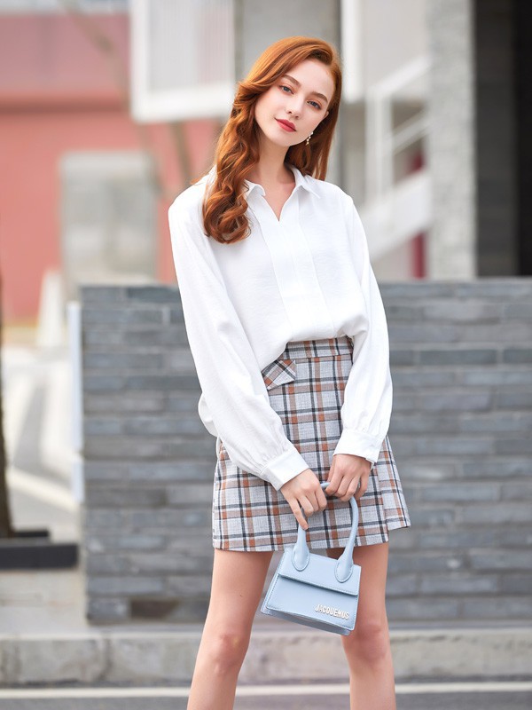 2、衬衫搭配半身裙可谓是小编的***了,这套巧妙的运用了叠穿的技巧,把衣服全塞进裙子里不仅显高,还让穿搭更有层次感,相对的话这套会严肃正式些,日常工作或参加会议都很合适。