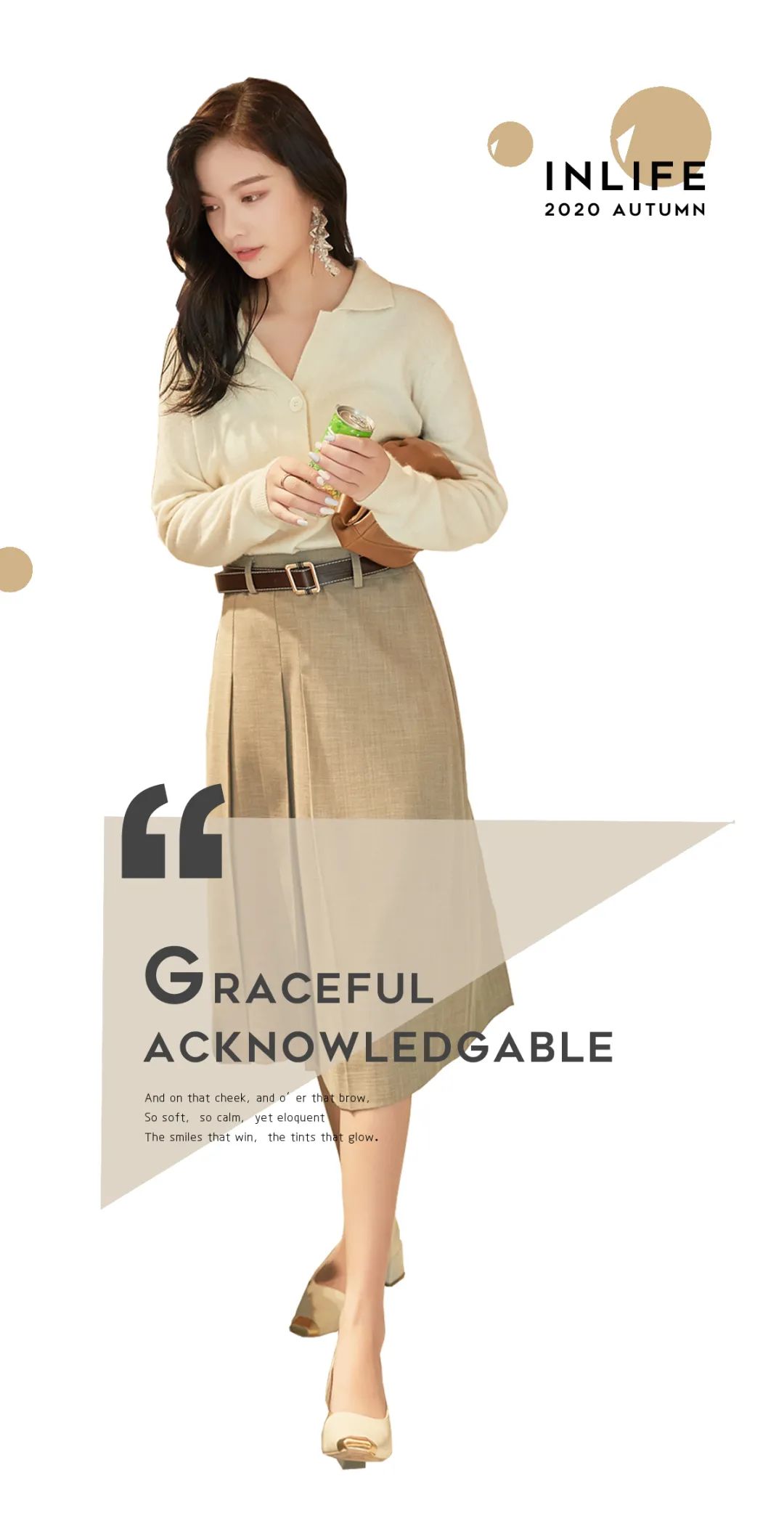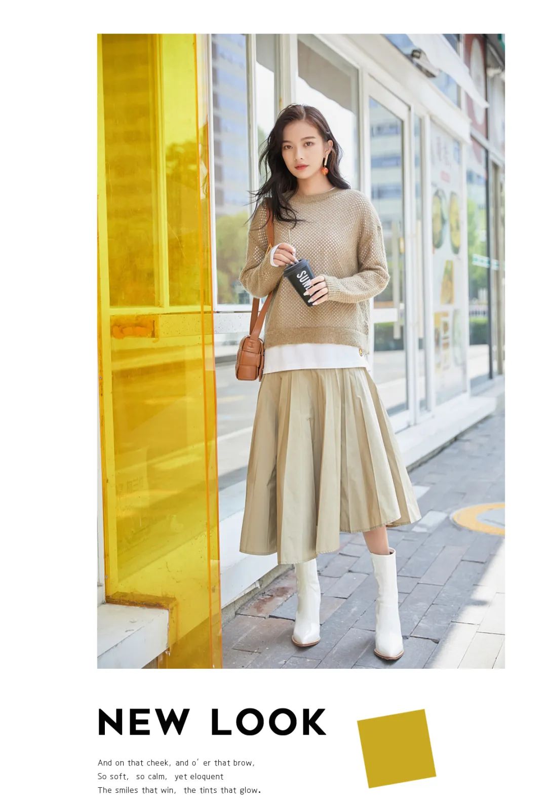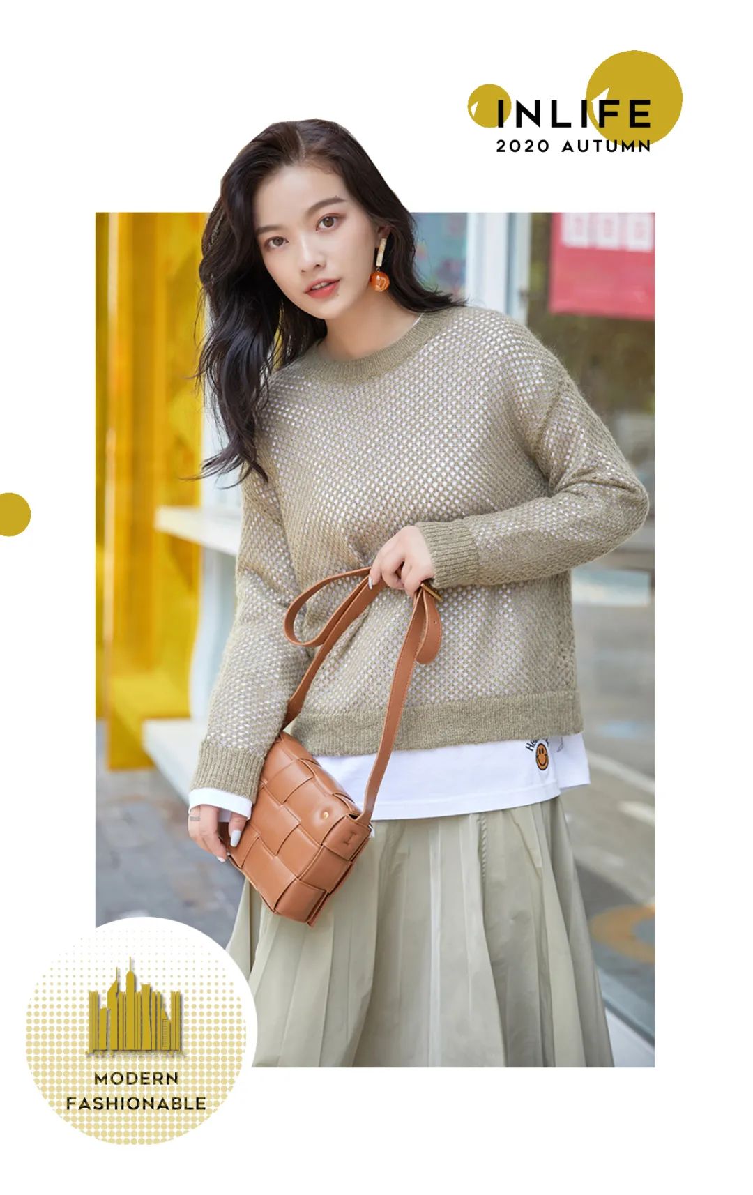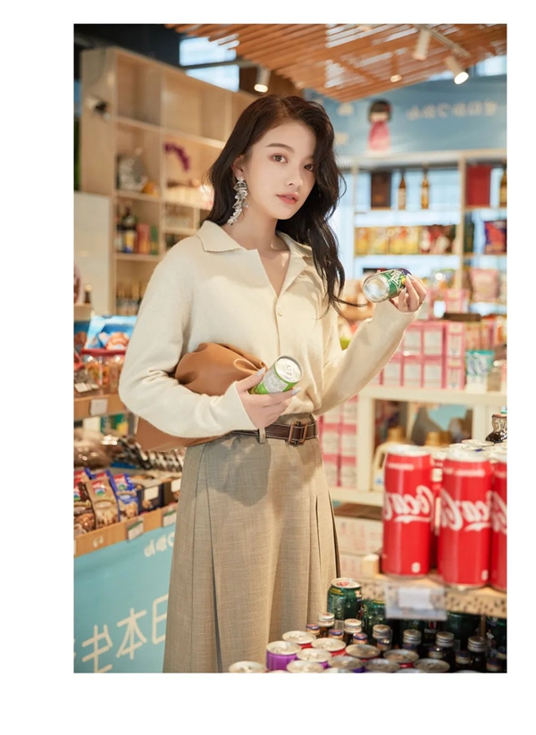 秋日,用薄毛衫与复古中裙演绎的优雅的你,