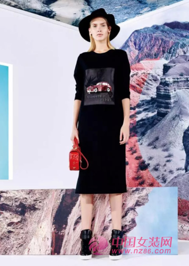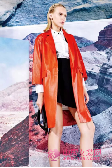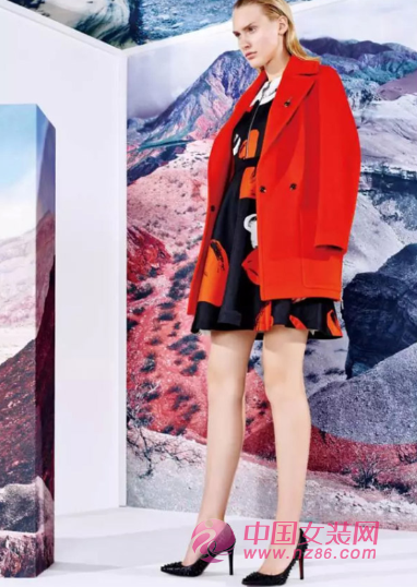 短外套中的新廓形,也是本季主打新推。幸运火红色与帅气的款式结合,给2016带来活力和喜悦。经典的52cm长度和廓形内搭代表幸运的艺术剪影化的橘子花,意味着可以包容一切,并完美呼应72cm黑色长A裙,特殊的毛边工艺成为本季主打新推新廓形,也更显年轻时髦。