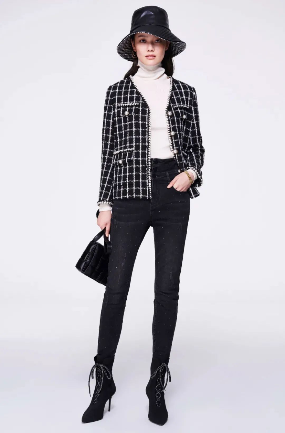 搭配经典的箱型维希格粗花呢外套经典又大方