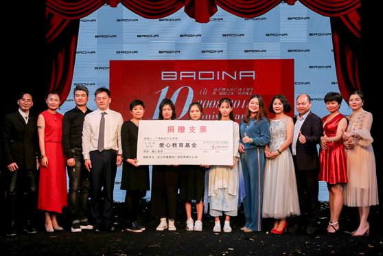 BADINA芭蒂娜作为中淑女装领军品牌,不仅在时尚界有着举足轻重的影响力,更是在慈善和公益之路上行稳致远,闪烁满格的社会正能量!早在1998年公司创立之初,就一直秉承着这样的企业文化,在公益慈善的道路上砥砺前行。今天,也将这份企业责任带到了广西,活动当天进行了慈善拍卖,并将拍卖所得4.1万元捐助给了广西纺织学院服装学院的三位优秀学生,谱写一曲温暖颂歌。