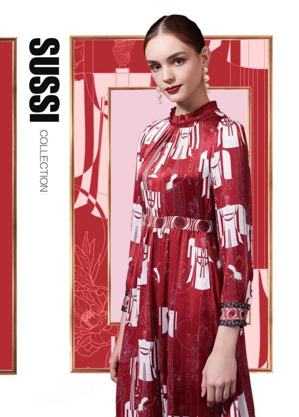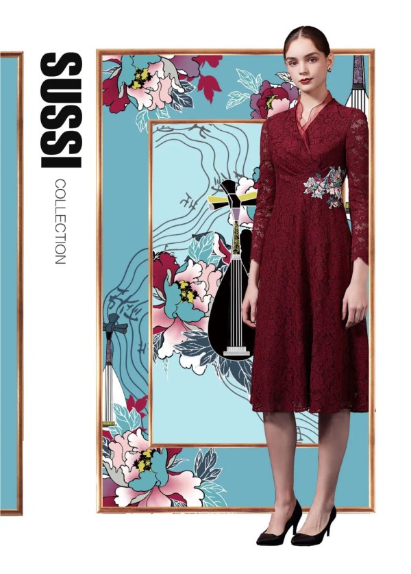 唐宫牡丹刺绣于蕾丝之上在深邃的酒红中绽放结合东西方乐谱的灵动娓娓谱颂女性视角下的美好世界