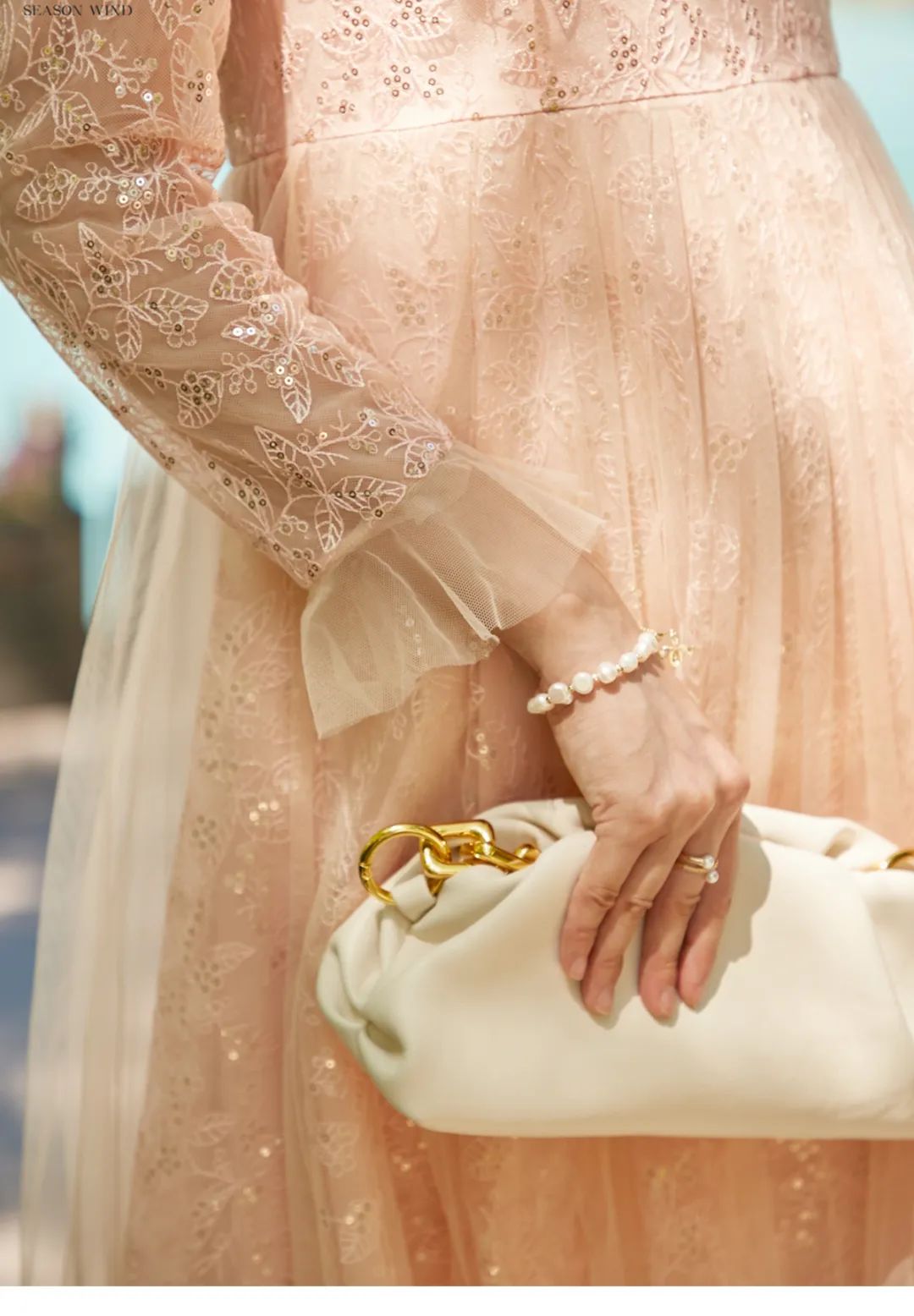 周末尾声,让带着金光闪闪的刺绣网纱收腰连衣裙,成为你约会、逛街的战衣;平时或许不适合穿得引人注目,但这是周末,高调张扬?都是那美的女神本人。