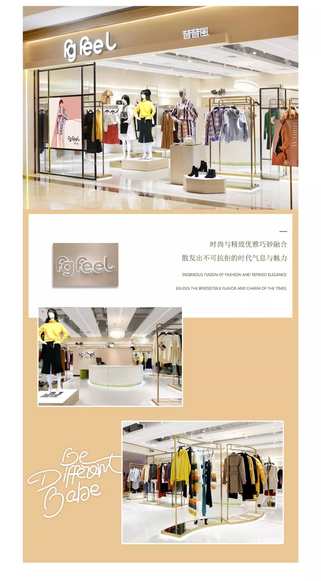 普普风佐岭虹湾店新装上阵全新的店面形象营造温暖舒适的购物环境沿袭SMART CASUAL风格丰富的服饰美学演绎女性的活力优雅