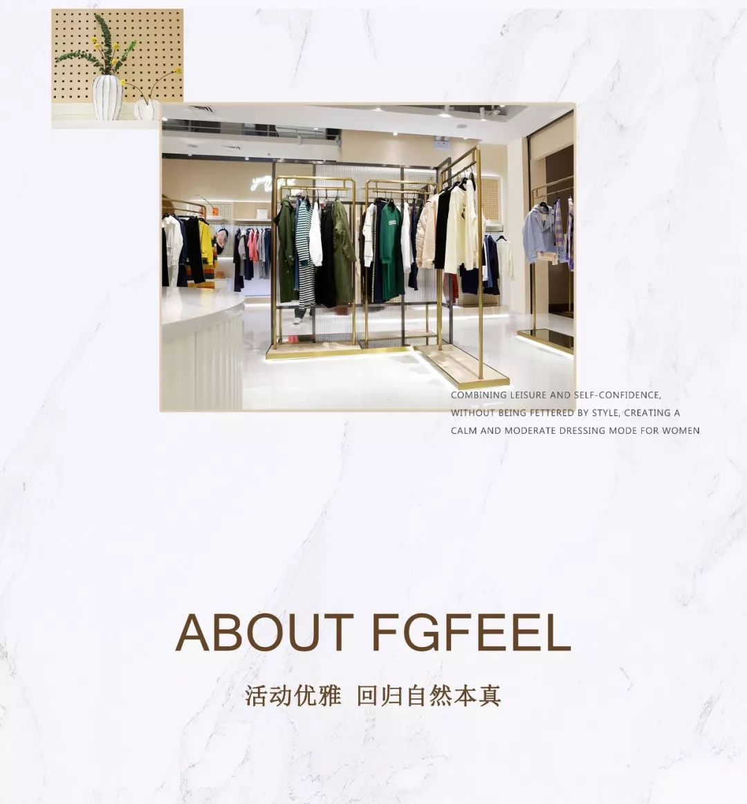 普普风 FGFEEL成立于2000年以自然舒适,回归生活本质释放简约的穿衣理念将悠闲与自信相结合不被风格所羁绊为女性打造从容、适度的穿衣模式